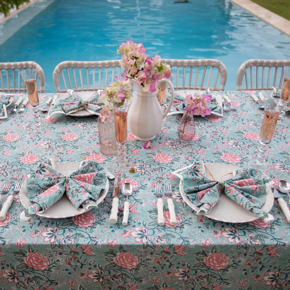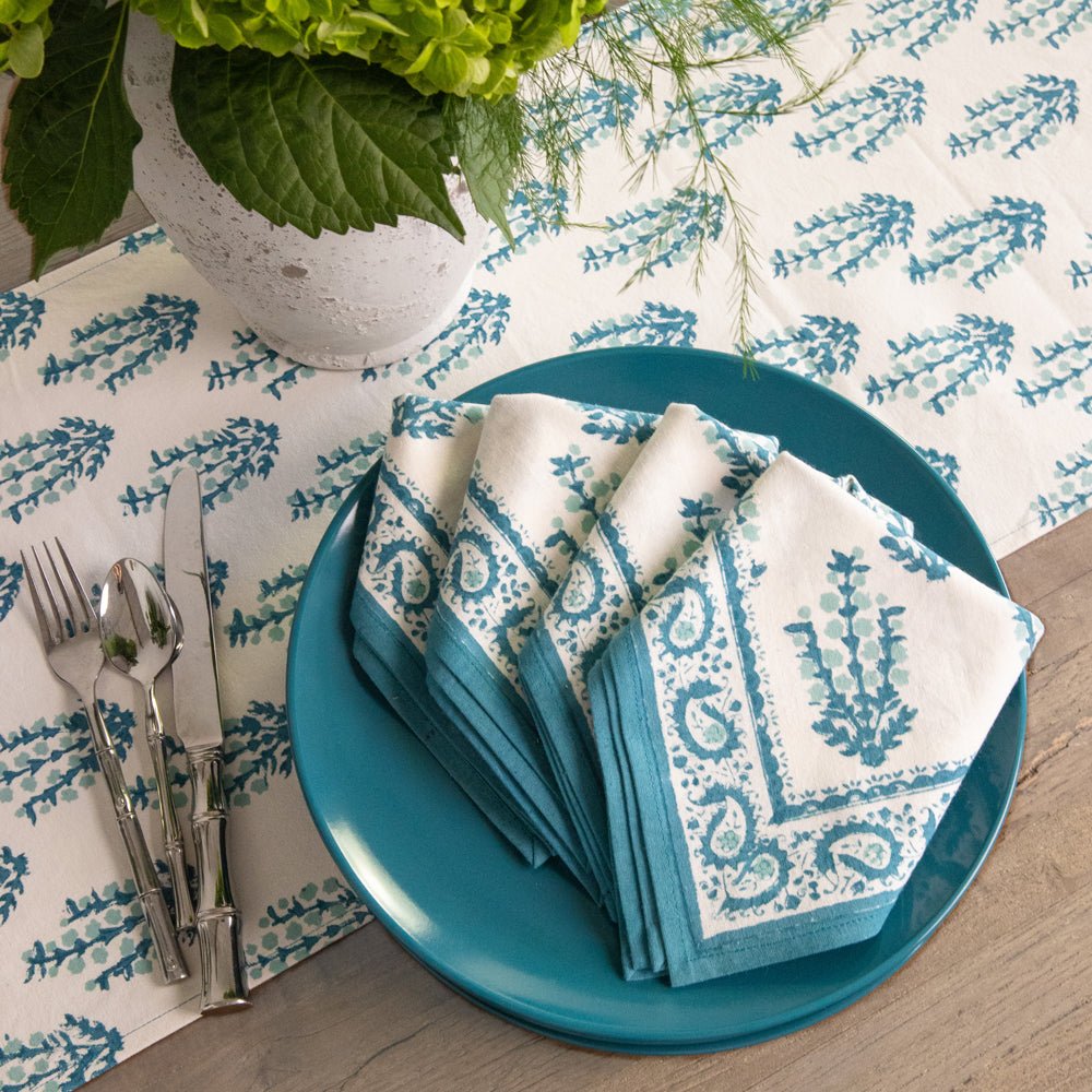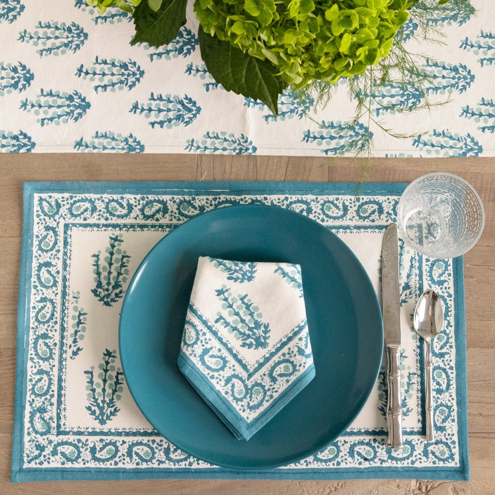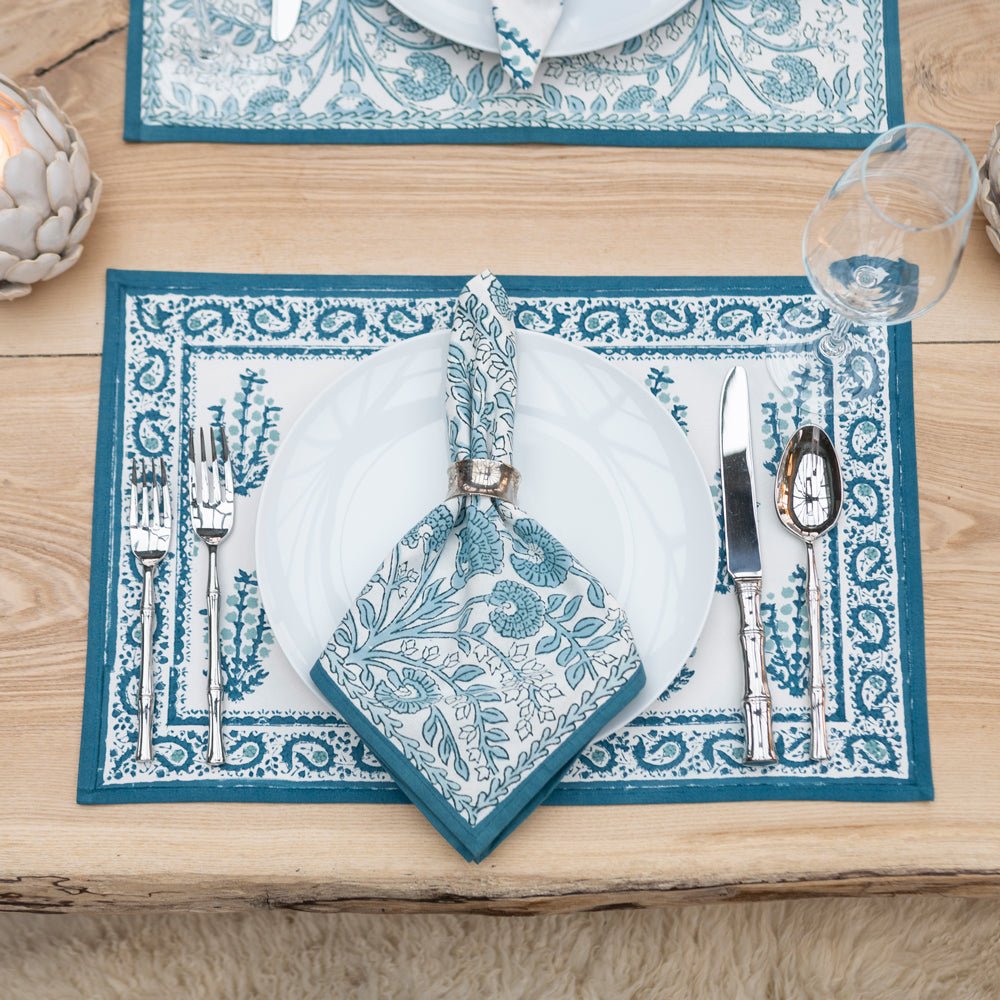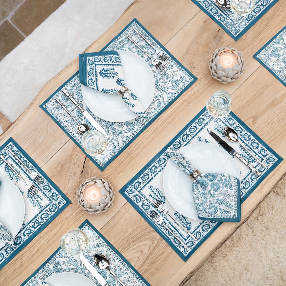 Transform your dining space into a blossoming garden with the Aqua Abloom collection, where the tranquility of aqua blue and the beauty of floral prints come together to create an unforgettable table setting. This stunning range of table linens is adorned with vibrant floral prints that bring a fresh, serene touch to any dining setting.