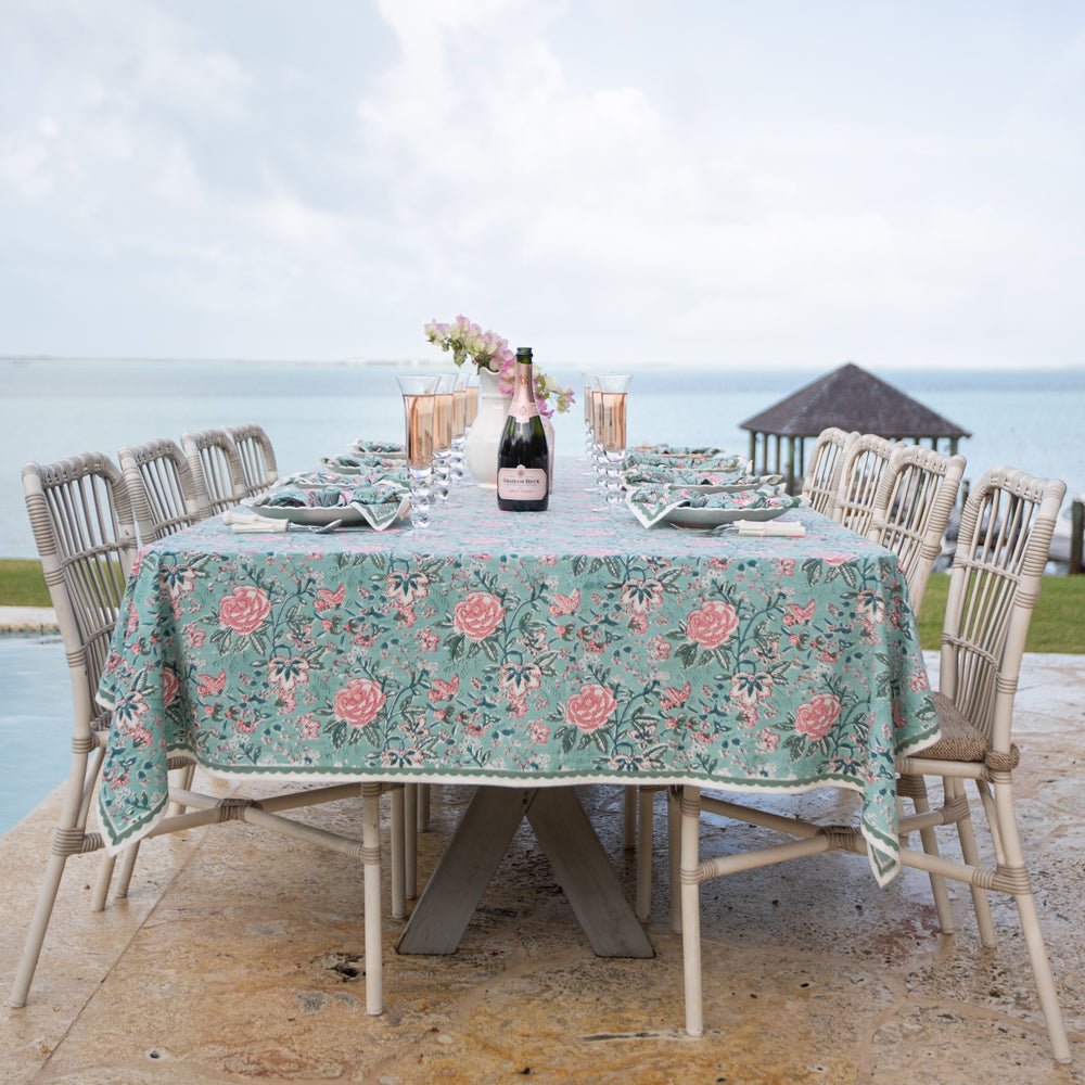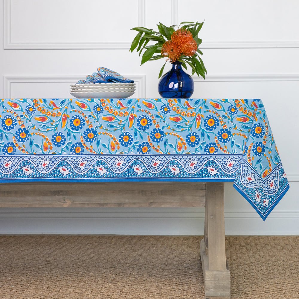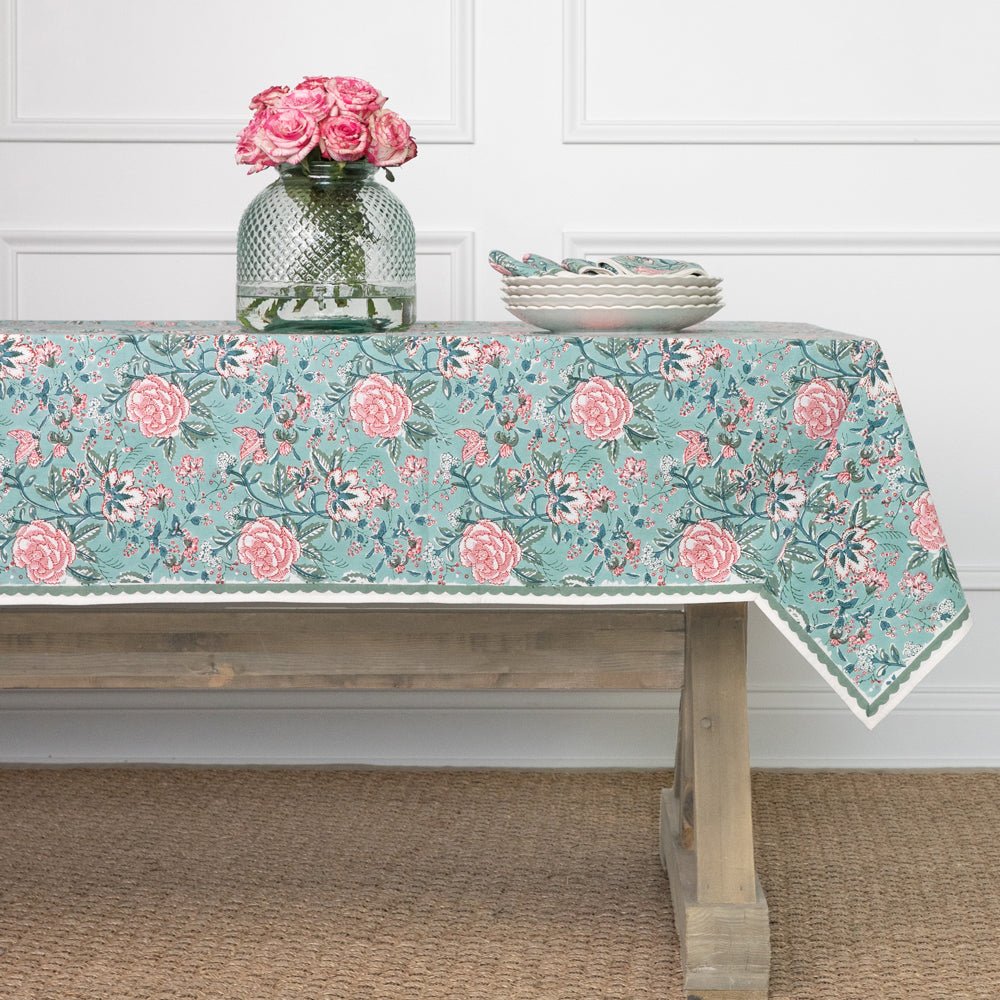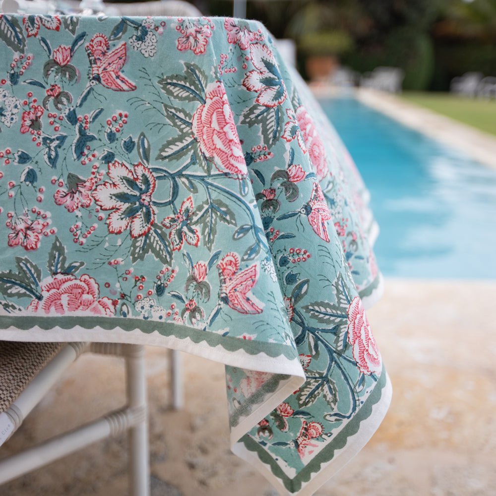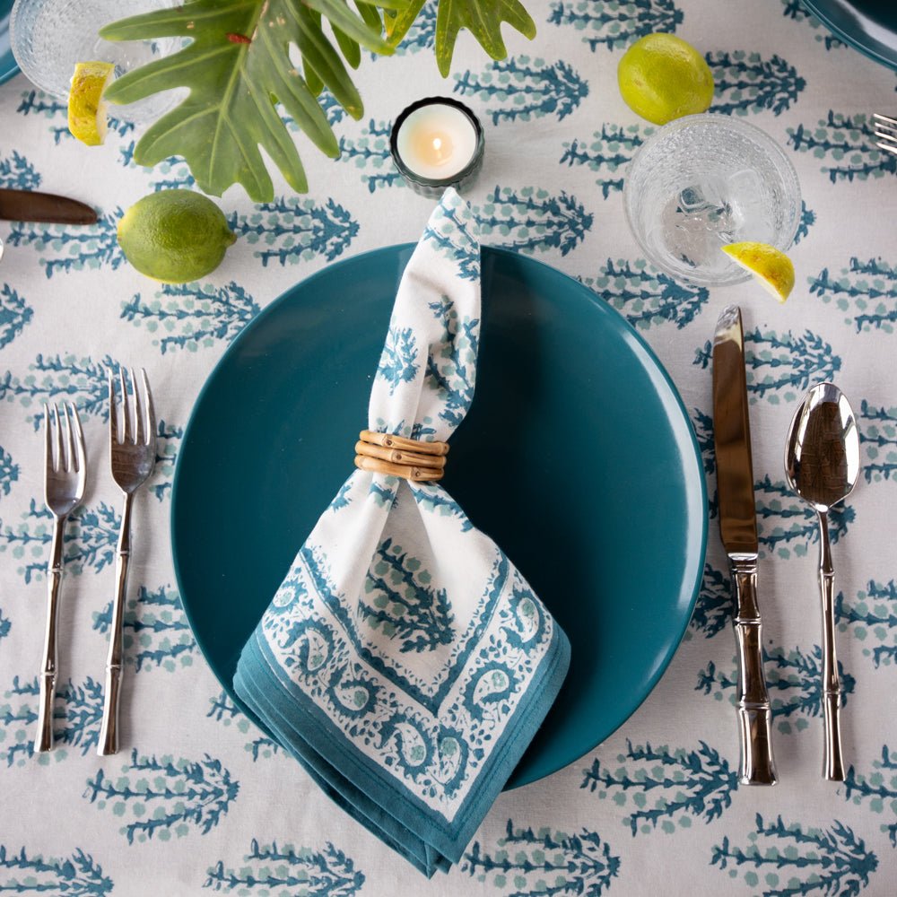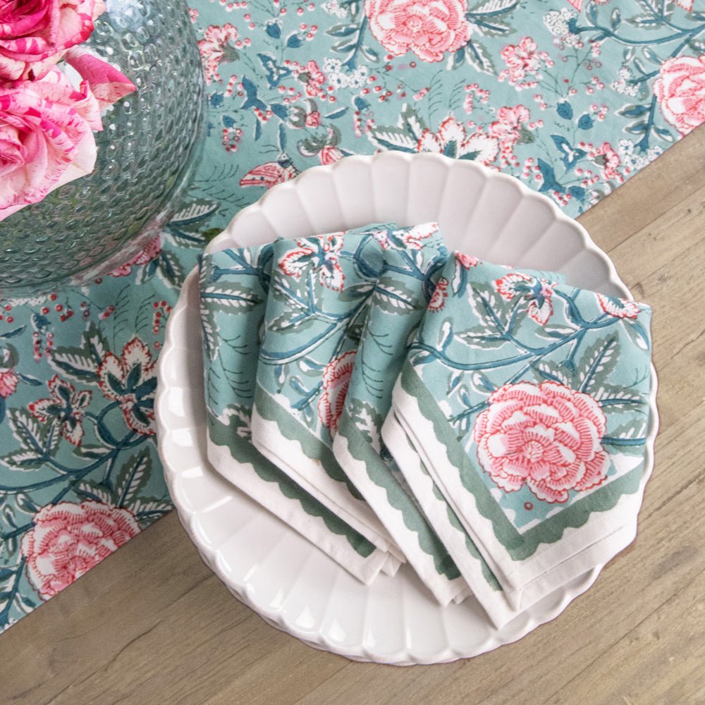 Transform your dining space into a blossoming garden with the Aqua Abloom collection, where the tranquility of aqua blue and the beauty of floral prints come together to create an unforgettable table setting. This stunning range of table linens is adorned with vibrant floral prints that bring a fresh, serene touch to any dining setting.