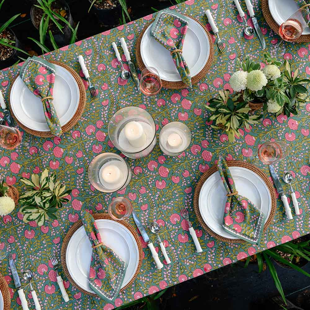 Introducing our exquisite Garden Party table linen collection, where elegance meets nature's beauty. Designed to elevate your dining experience and transform any occasion into a captivating celebration, this collection captures the essence of a blooming garden, enchanting you and your guests with its charm.