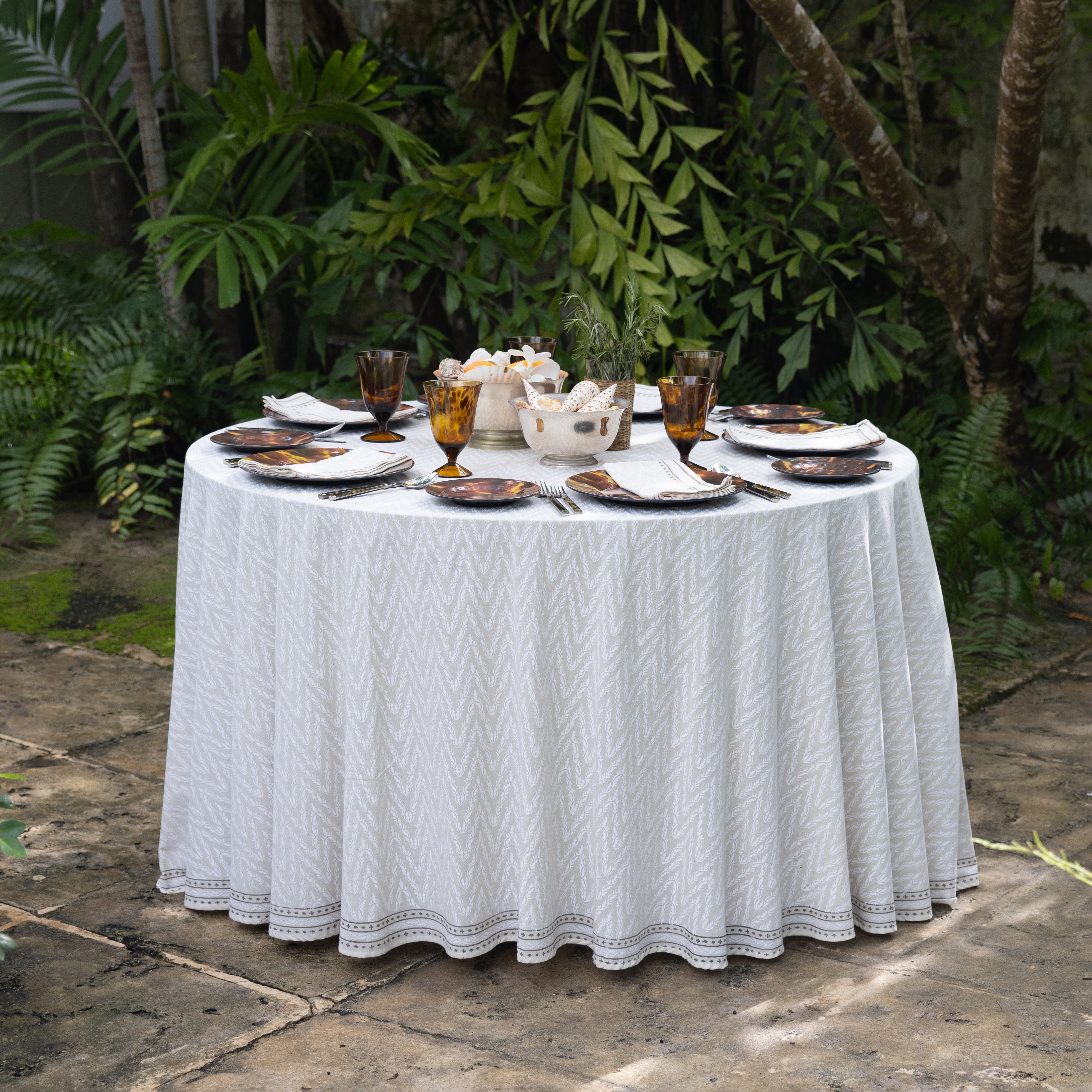 India Hicks Home Canasta Crewel White on White Tablecloth