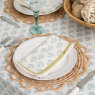 This beautiful set of 100% cotton hand blocked printed napkins in Carnation Seafoam is intended to be mixed haphazardly together with the other patterns, just as our families are.
