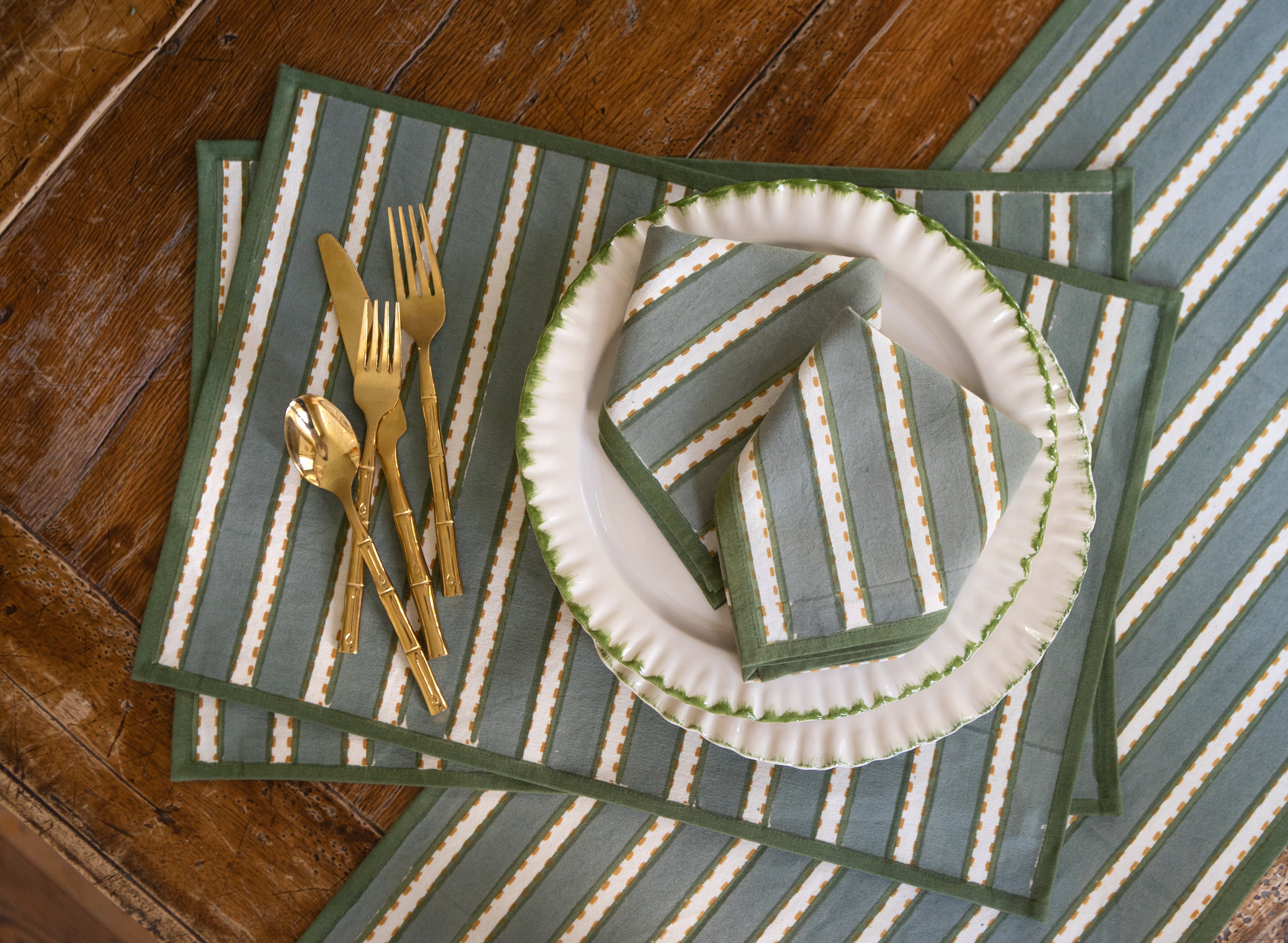 Our classic hand block printed placemats, along with our natural abaca, jute, and ratan placemats, are Pomegranate staples that have become an important vehicle for expressing our unique, colorful, and practical point of view—made of natural materials, in earth tones accented with pops of color, to our distinctive printed cotton canvas designs in vibrant colors, these designs are all designed and made by hand to protect and craft your table. Pomegranate signature Handblock printed designs continue to be the foundation for our expanding collection of table linens.