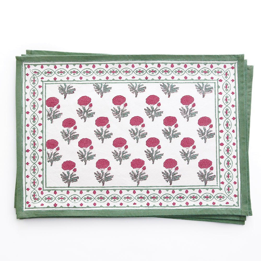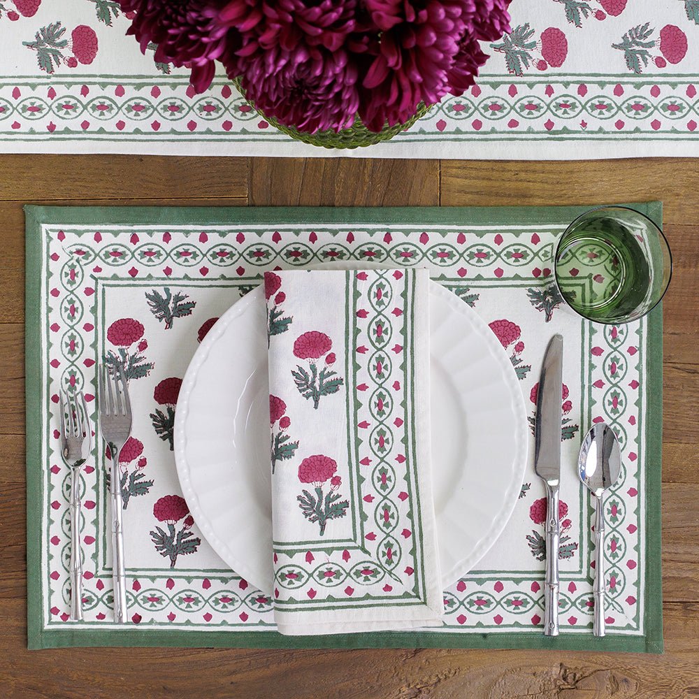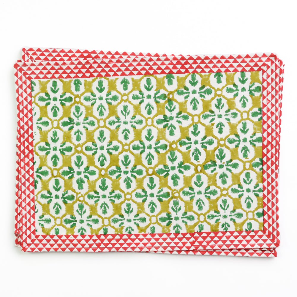 Pomegranate placemats are available in exclusive hand block-printed cotton designs and natural woven materials, crafted to bring color, texture, and style to your table. Offered in a variety of prints, colors, and shapes, our placemats make it easy to create a fresh look for everyday dining or special gatherings. Whether paired with matching tablecloths and napkins or mixed for a layered tablescape, these durable and distinctive placemats are designed to brighten your table and elevate every meal.