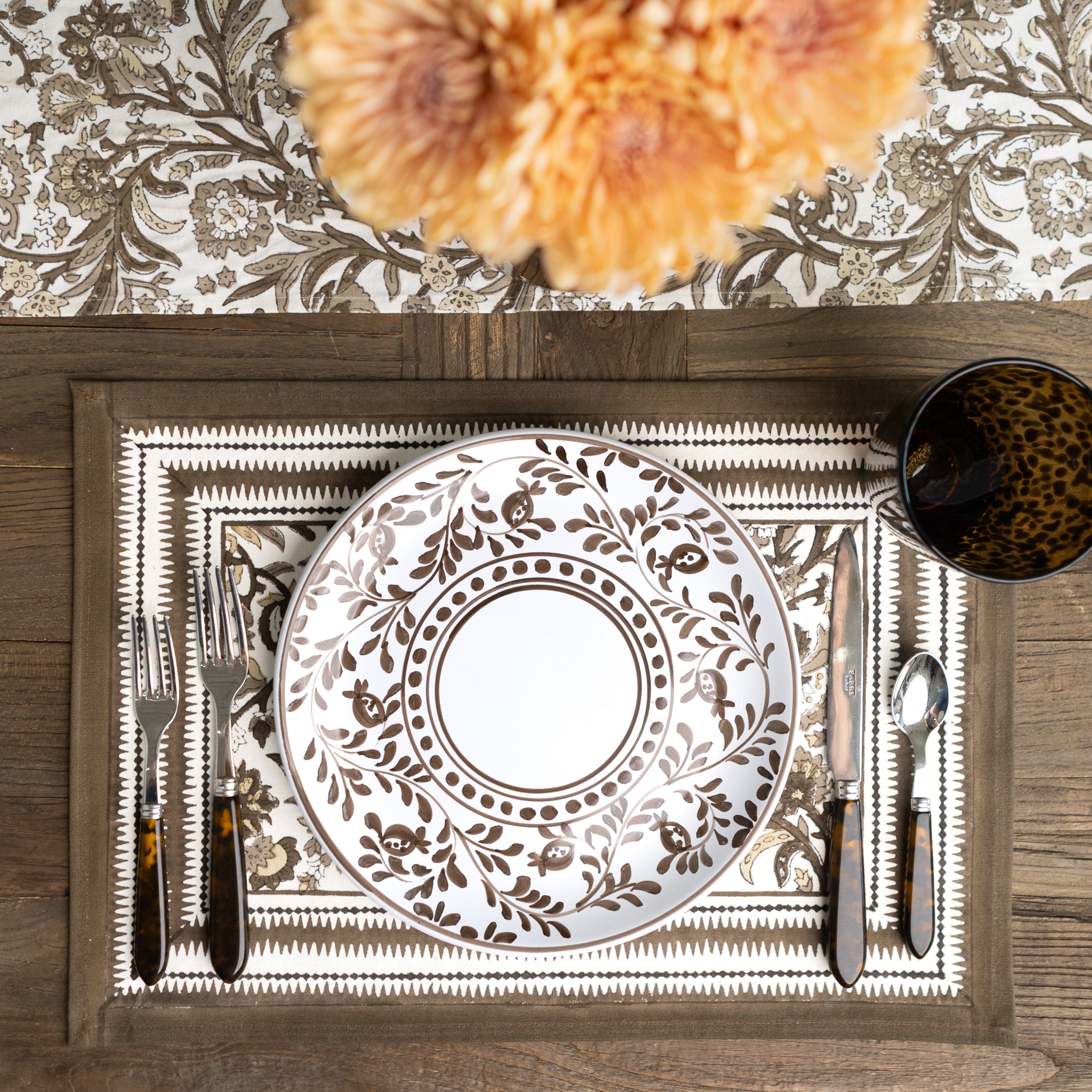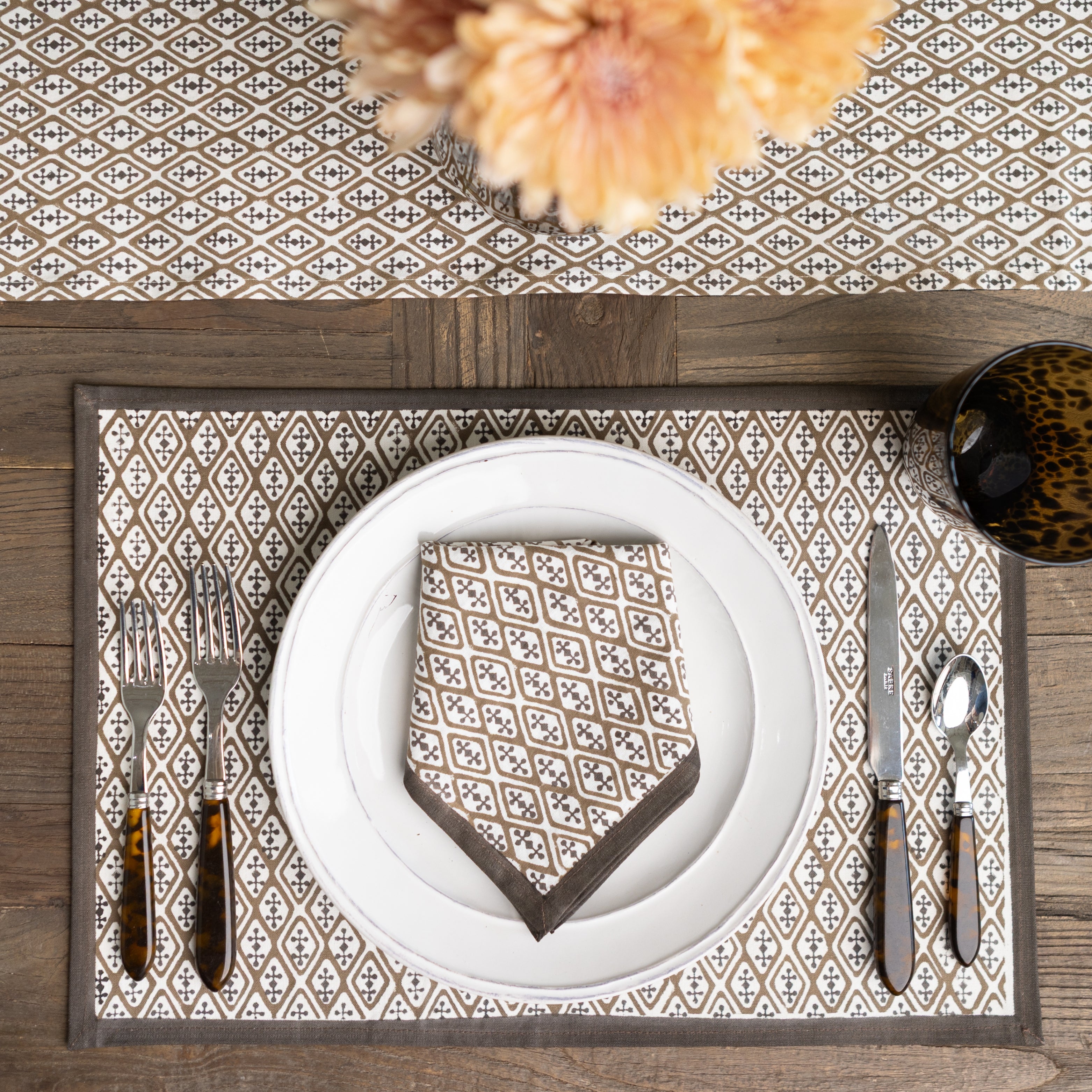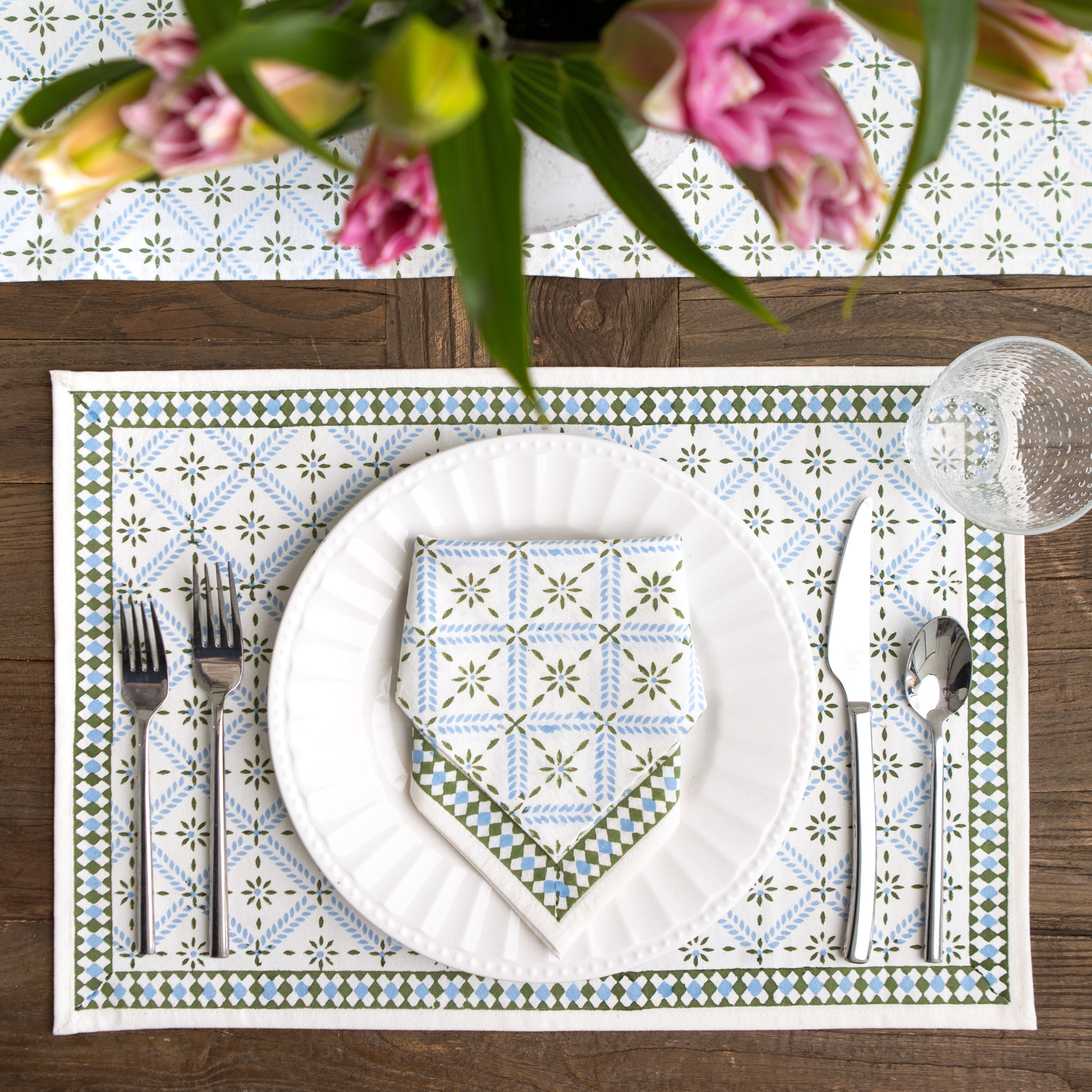Pomegranate placemats are available in exclusive hand block-printed cotton designs and natural woven materials, crafted to bring color, texture, and style to your table. Offered in a variety of prints, colors, and shapes, our placemats make it easy to create a fresh look for everyday dining or special gatherings. Whether paired with matching tablecloths and napkins or mixed for a layered tablescape, these durable and distinctive placemats are designed to brighten your table and elevate every meal.