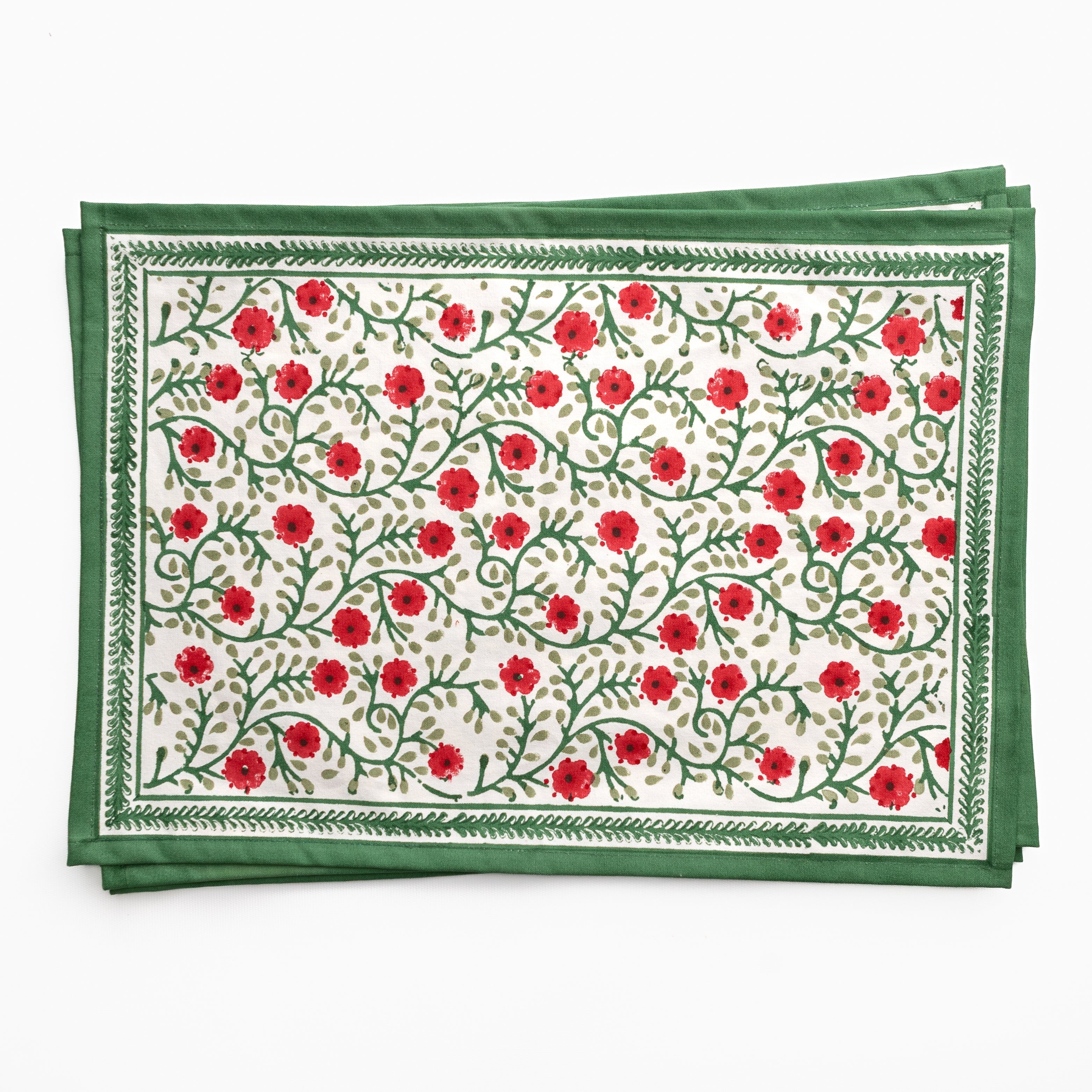 Pomegranate placemats are available in exclusive hand block-printed cotton designs and natural woven materials, crafted to bring color, texture, and style to your table. Offered in a variety of prints, colors, and shapes, our placemats make it easy to create a fresh look for everyday dining or special gatherings. Whether paired with matching tablecloths and napkins or mixed for a layered tablescape, these durable and distinctive placemats are designed to brighten your table and elevate every meal.