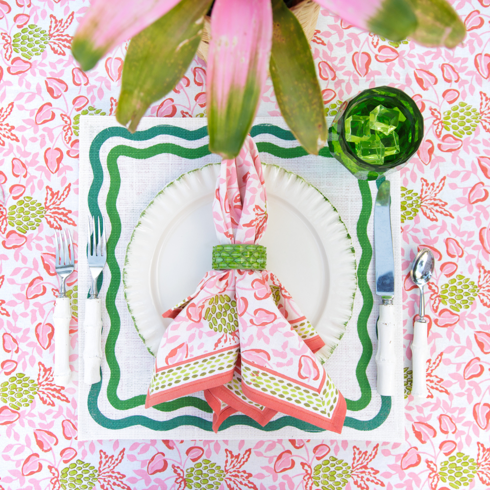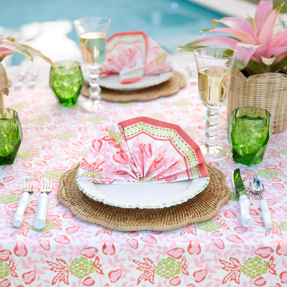 The Pretty in Pink collection is our love letter to color, connection, and the kind of romance that shows up at the table. Think soft blushes, cheerful roses, painterly florals, and fresh pops of pink that instantly lift the mood — playful, warm, and never too precious.