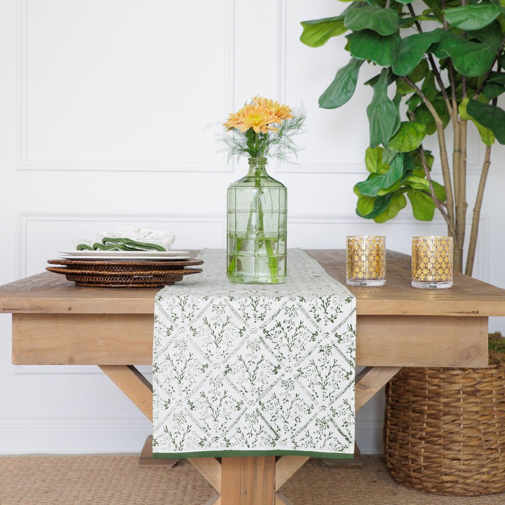 Pomegranate table runners bring a fresh pop of color and pattern to any dining table. Hand block-printed on 100% cotton with vibrant floral and geometric designs, our runners are the easiest way to refresh your decor and instantly change the look and feel of a room. Perfect for layering with matching tablecloths or napkins, each runner is artisan-crafted to add warmth, style, and personality to your tablescape—whether for everyday dining or special occasions.