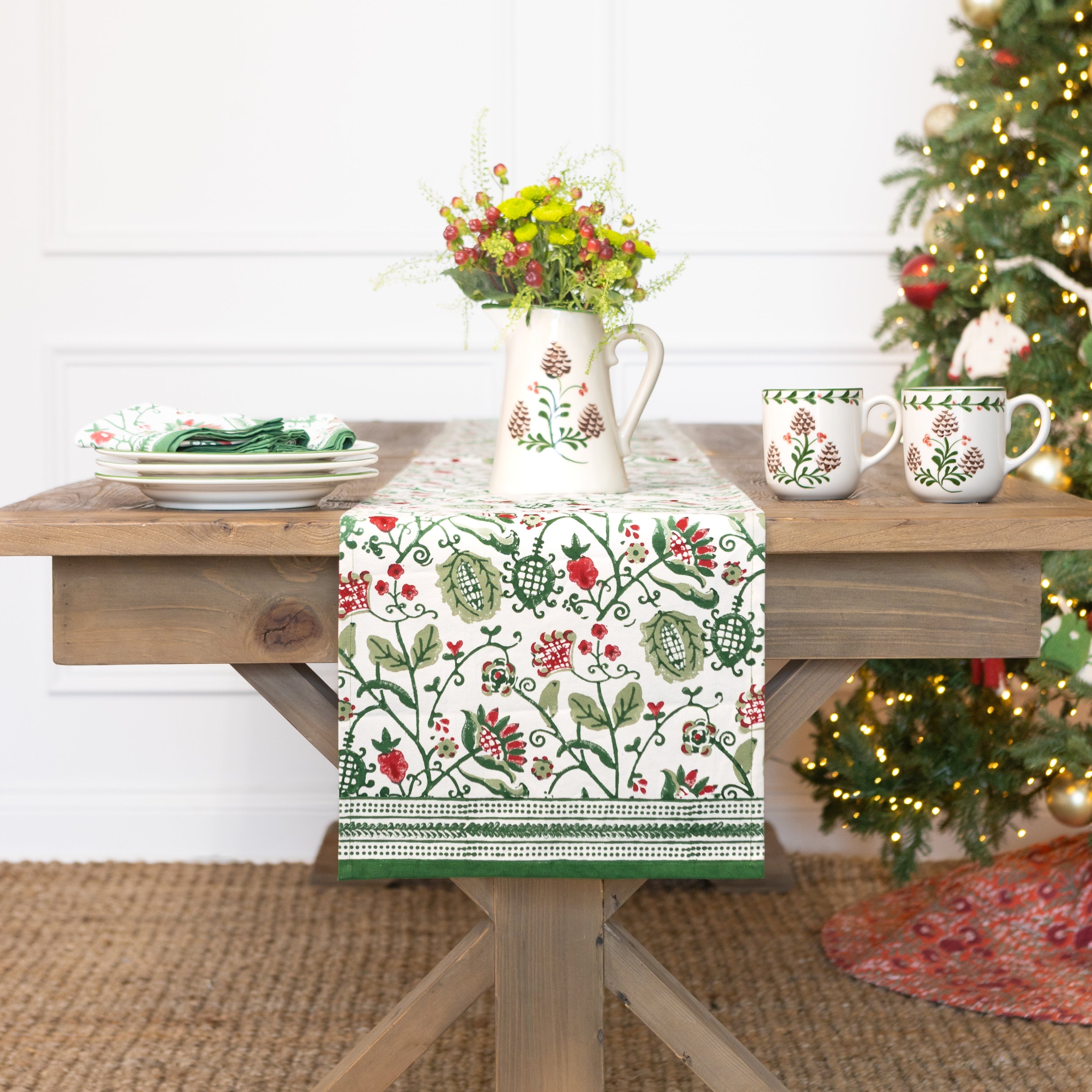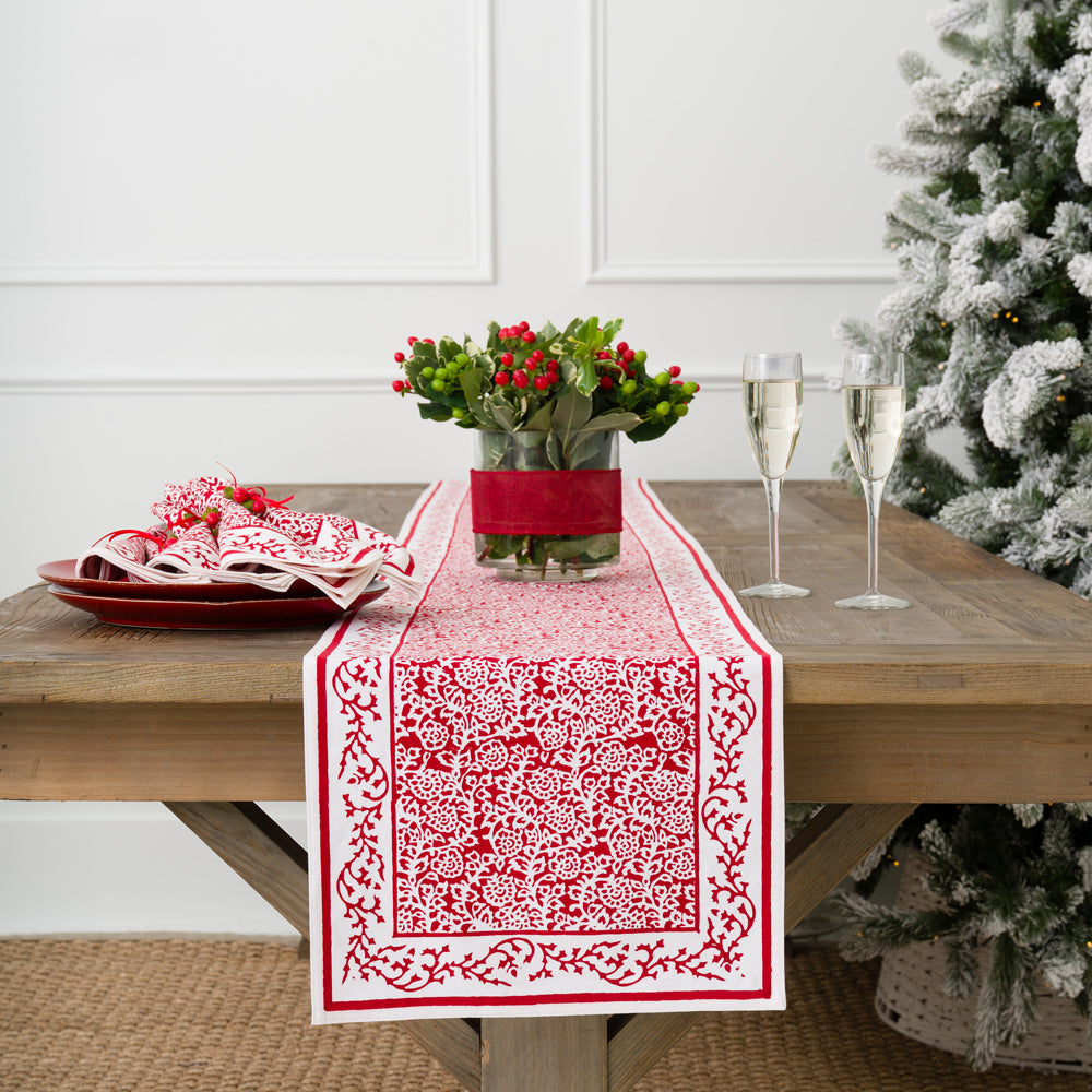 Pomegranate table runners bring a fresh pop of color and pattern to any dining table. Hand block-printed on 100% cotton with vibrant floral and geometric designs, our runners are the easiest way to refresh your decor and instantly change the look and feel of a room. Perfect for layering with matching tablecloths or napkins, each runner is artisan-crafted to add warmth, style, and personality to your tablescape—whether for everyday dining or special occasions.