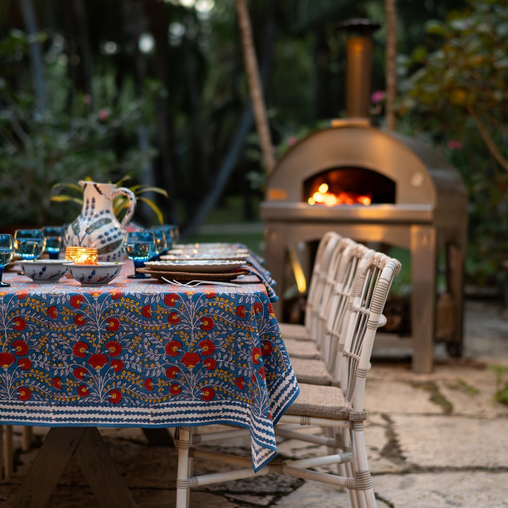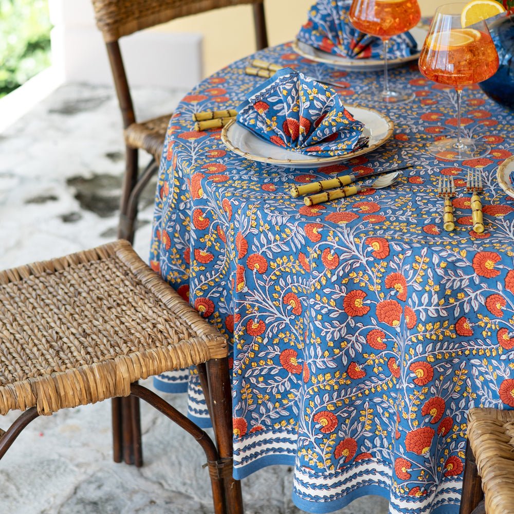 Set the stage for memorable meals with our Cactus Flower Blue & Poppy Tablecloth. Crafted from premium cotton and featuring a whimsical print with a tranquil blue background and lively poppy orange flowers, this tablecloth instantly enlivens any dining space. Whether for everyday use or special occasions, its vibrant design and superior quality make it a delightful addition to your table decor.