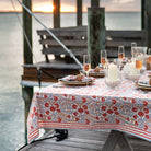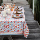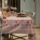 Introducing a beautiful new print that is predicted to be a best seller year round! This floral print showcases periwinkle vines with warm orange blooms and earthy undertones. Perfect for day or night and all seasons, it is sure to bring a colorful but calming energy to your dining experience.