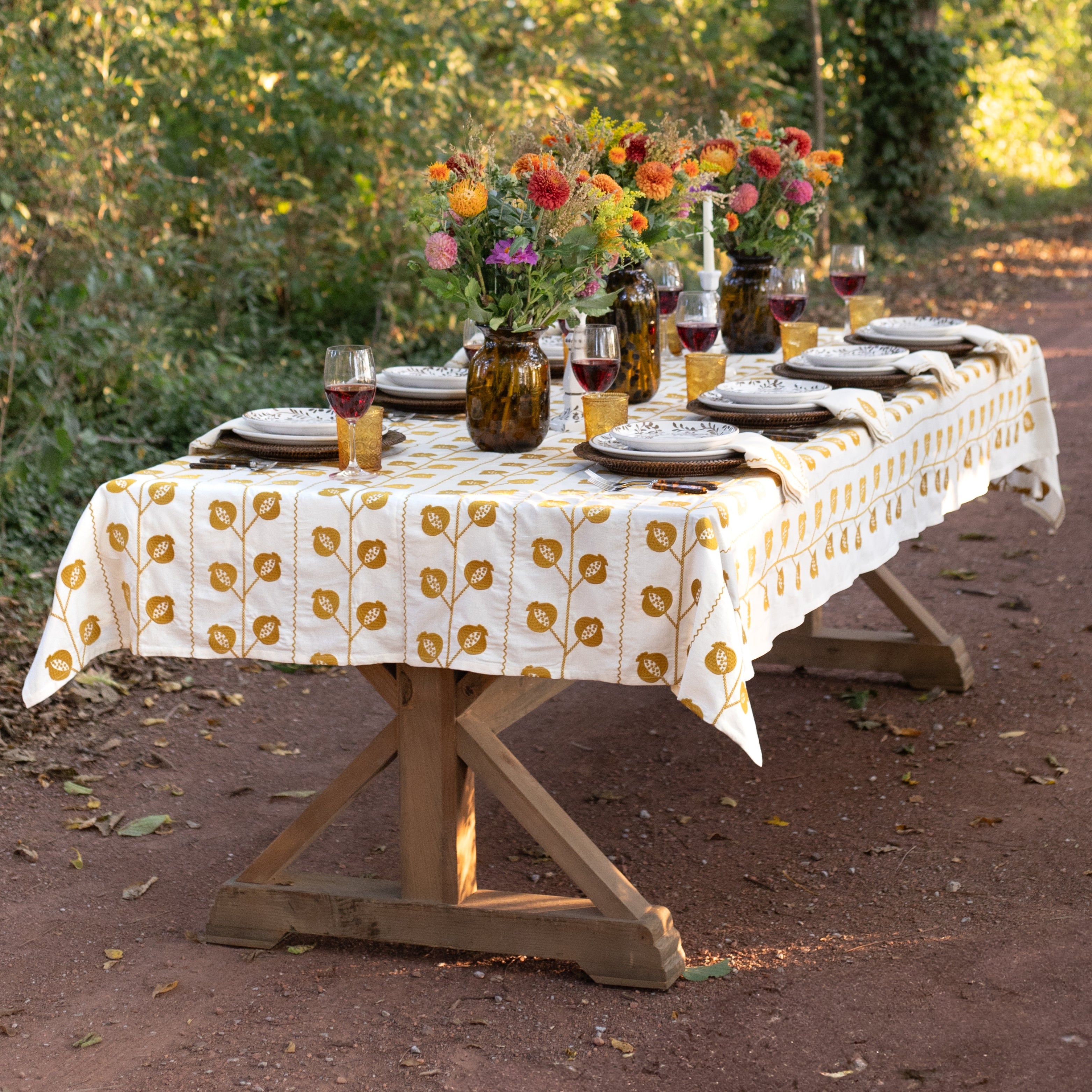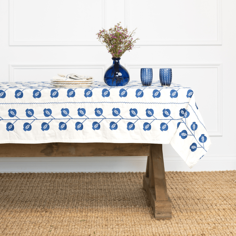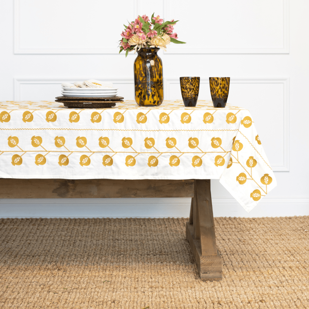 Set the scene for every gathering with our collection of artisan-crafted tablecloths. From richly hand block-printed patterns to intricately embroidered designs, each piece is thoughtfully made to bring beauty and character to your table. Whether you’re dressing up a special occasion or elevating everyday meals, our tablecloths add a layer of timeless style and craftsmanship that transforms any setting. Designed to mix, match, and make memories, they’re heirloom-quality linens meant to be enjoyed season after season.