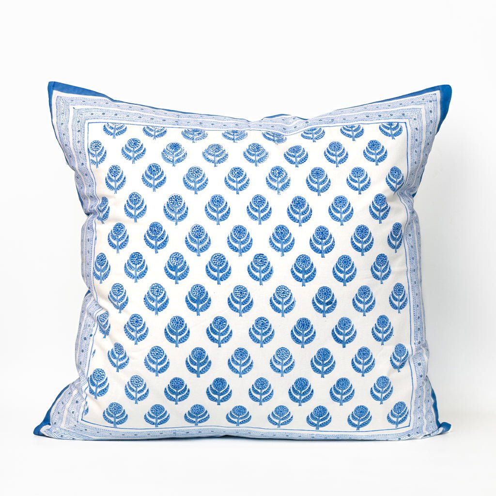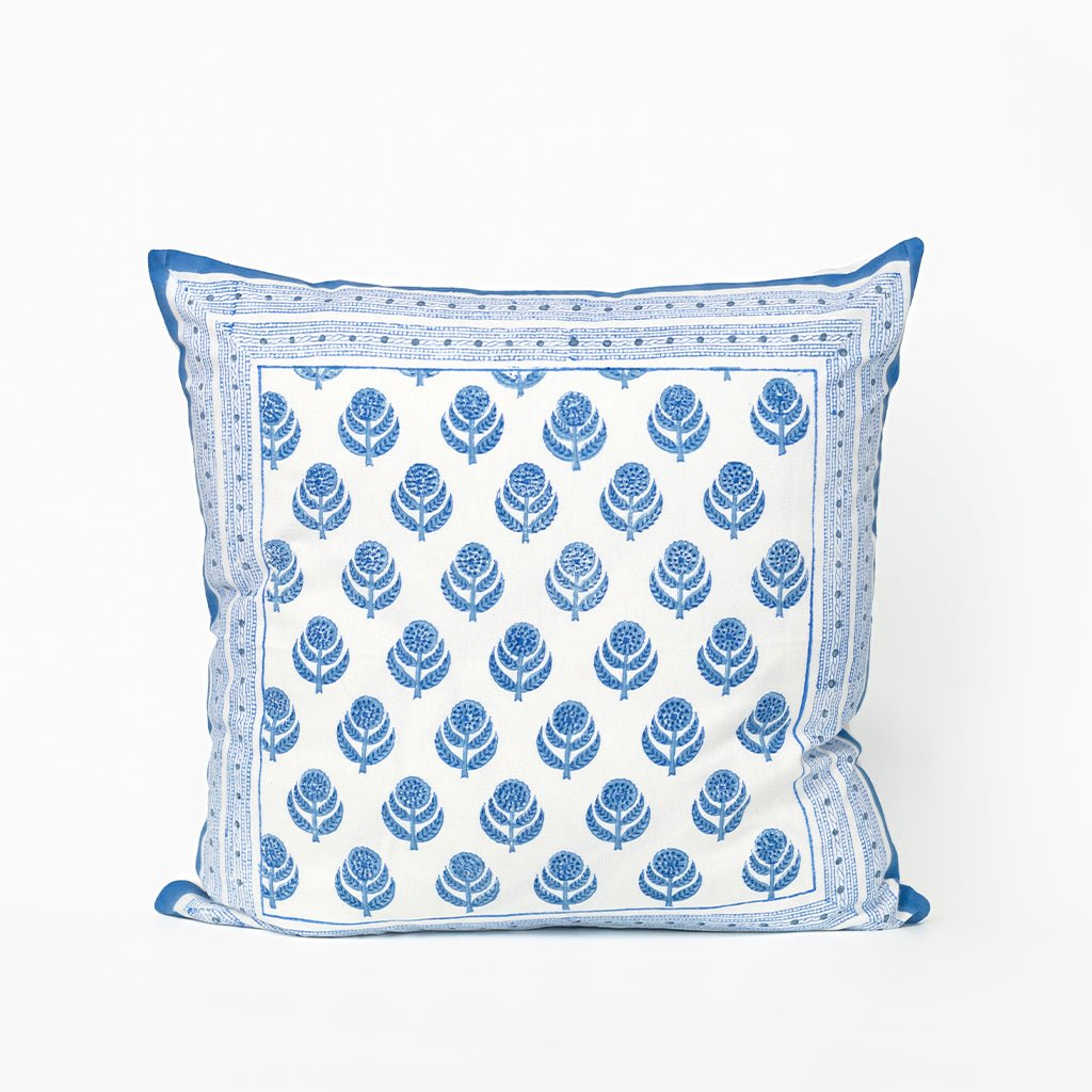 The Pinot Pillow Cover brings effortless elegance to any room with its refreshing blue floral motif, originally hand-painted and then hand-block printed by artisans. Crafted from soft cotton, each pillow cover showcases intricate detailing and a crisp border that enhances its refined, globally inspired style. Available in multiple sizes for easy layering—from sofas and reading chairs to outdoor seating and bedroom ensembles. Mix and match for a perfectly styled, artisan-crafted look.