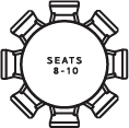 For longer tables on the patio, by the pool or in the kitchen where you comfortably gather with 8 people, yet can squeeze up to 10.