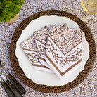 India Hicks' rattan chargers in an exotic antiqued dark brown hue. Practical for everyday and elevated for chic and elegant gatherings.