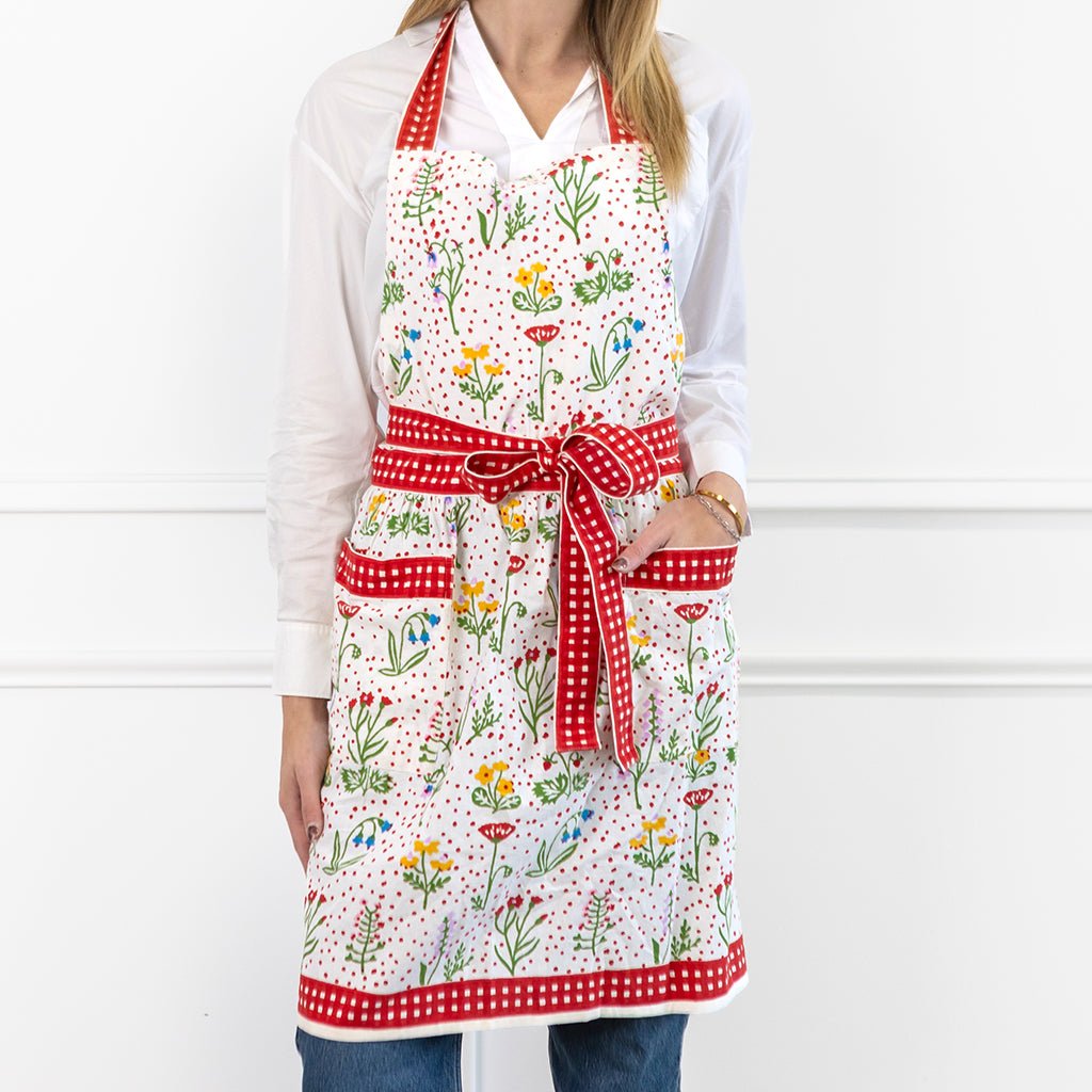 This apron has that slightly nostalgic floral-meets-gingham feel, but the color keeps it fresh. It’s cheerful without being too sweet and makes everyday cooking feel a little more put together. This is the kind of piece that makes a table feel like yours—collected, relaxed, and full of life. The pattern brings color and story, while the craftsmanship keeps it grounded. Use it often, mix it freely, and let it become part of your everyday rituals and gatherings.
