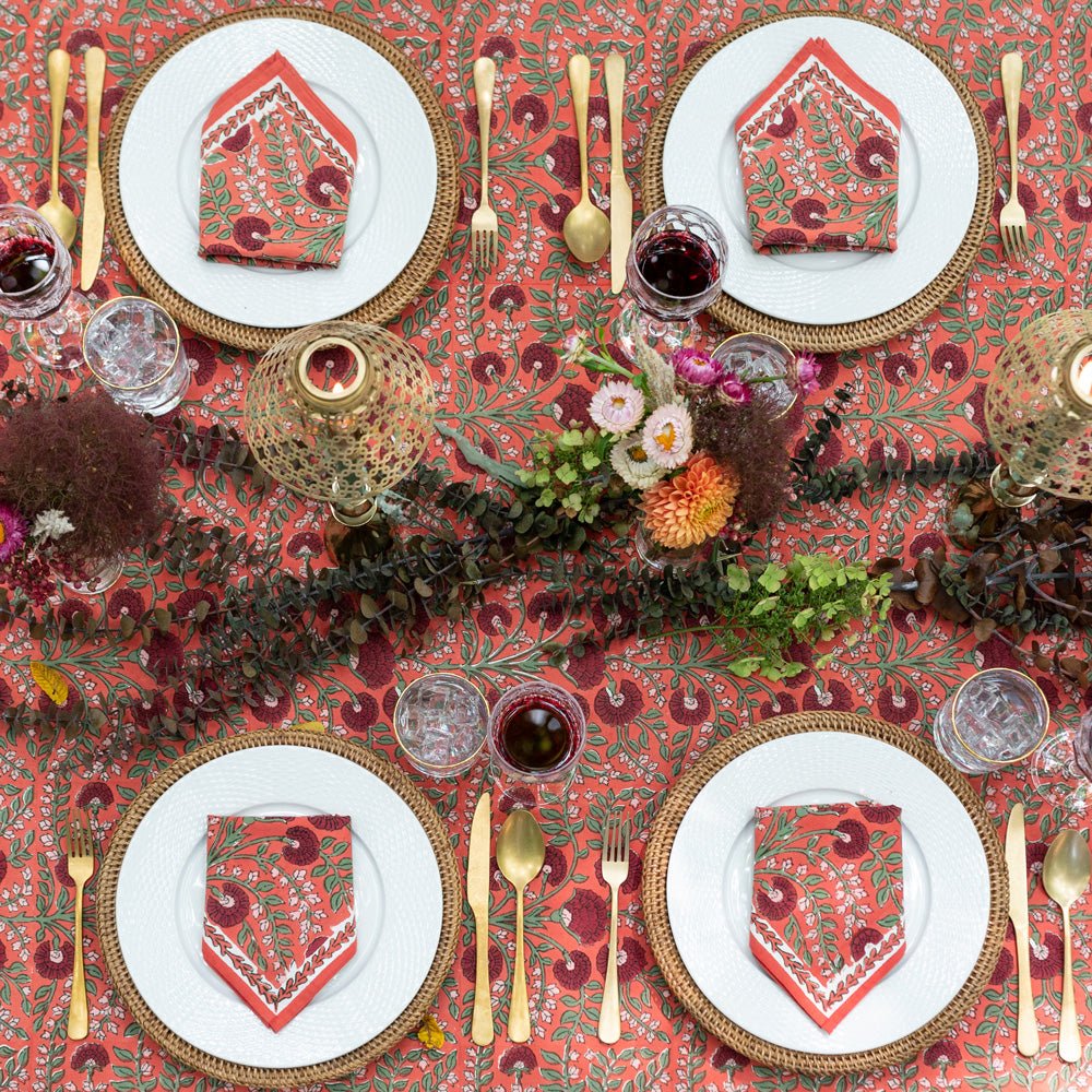 Elevate your fall and holiday dining experiences with our exquisite Cactus Flower Red Napkins! As the leaves outside transform into a vibrant tapestry of autumn hues, invite the warmth and charm of the season into your dining room with these meticulously designed napkins. Our Cactus Flower Red Napkins feature a rich, crimson hue reminiscent of autumn leaves, adorned with delicate sage green vines that evoke the earthy beauty of a fall garden.
