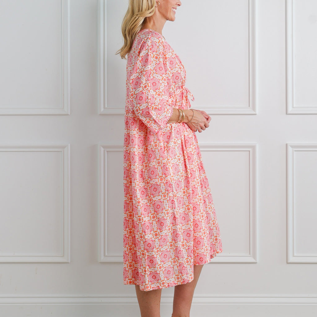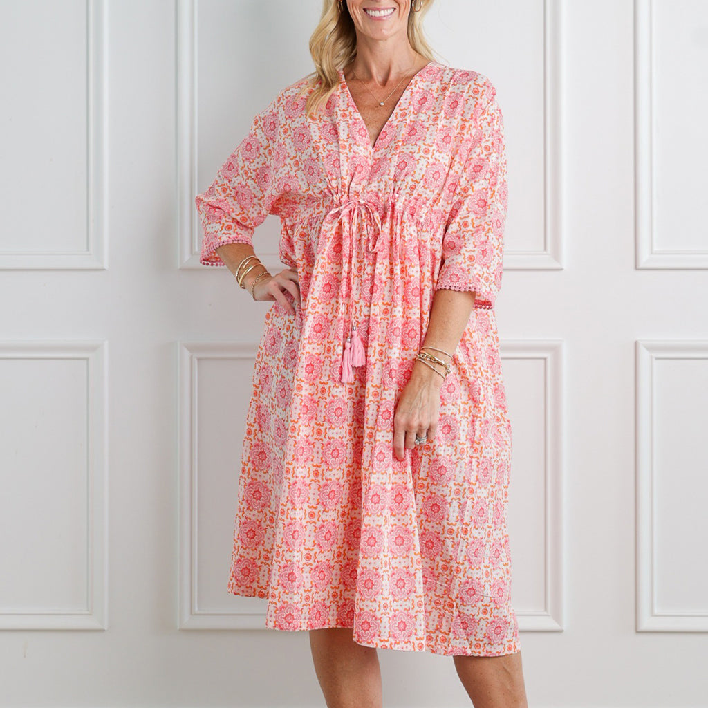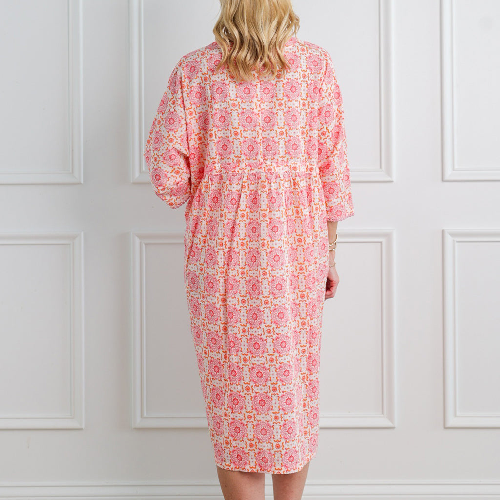 This caftan coverup flows beautifully in the vibrant Celia Citrus palette. The relaxed shape keeps you cool while offering graceful movement and just the right amount of coverage. Ideal for seaside walks, long lunches, or an effortless transition from beach to town. A bright and breezy summer staple.