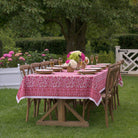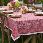 Refreshing spring blossoms! Cheer up the family table with this beautiful pink and crimson floral block printed tablecloth. Our blossoms collection is the perfect way to refresh your table for spring and summer--mix and match for an effortless look that will brighten up your home!