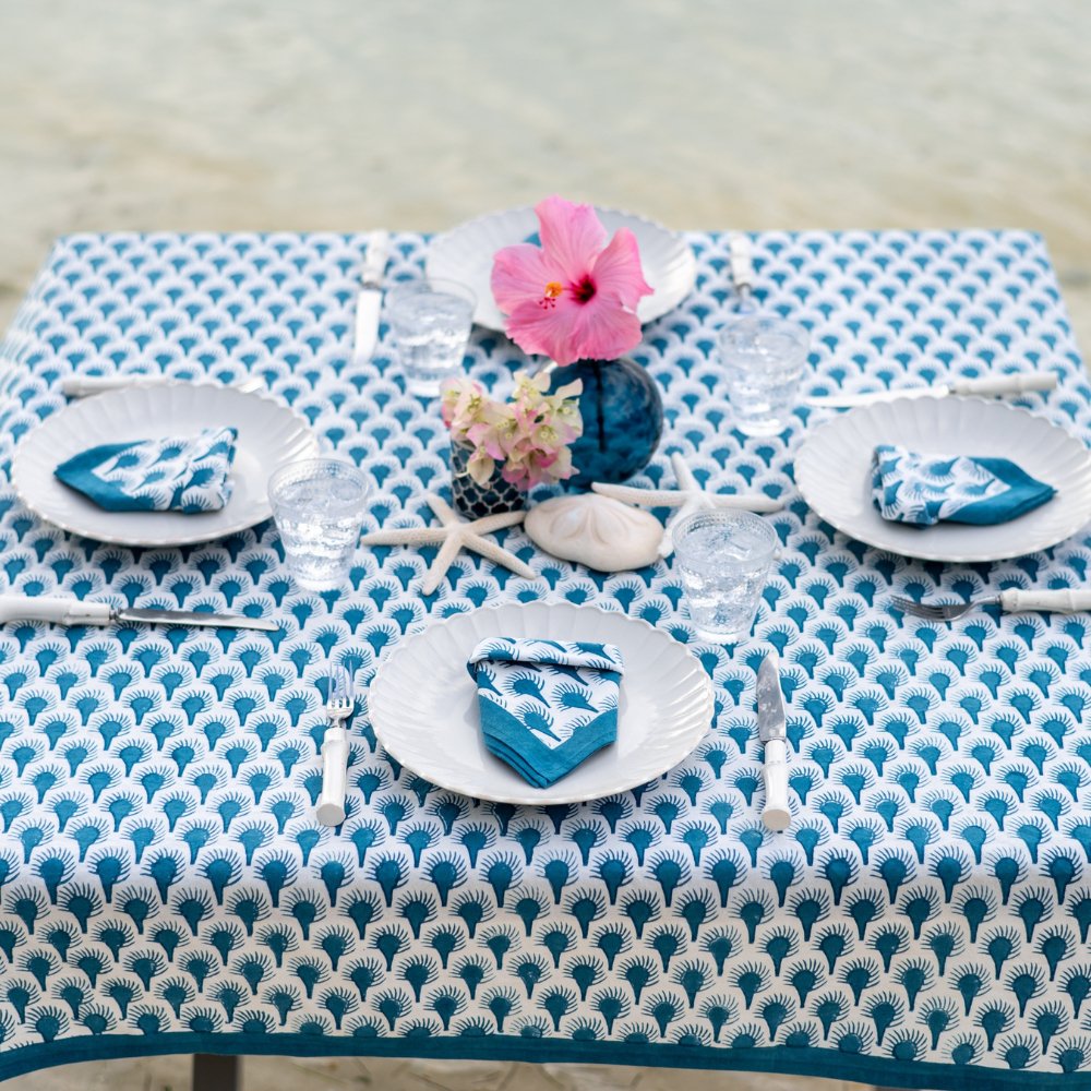 Spice up your dining experience with our Geo Feather Teal Napkins! Hand block printed with a bohemian inspired feather pattern in gorgeous teal, each napkin adds a touch of whimsy and elegance to your table. Perfect for any occasion, these unique napkins are a must-have for any home!