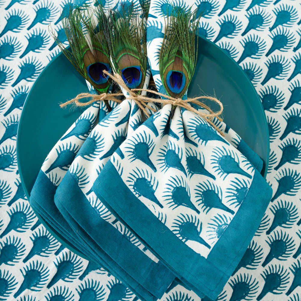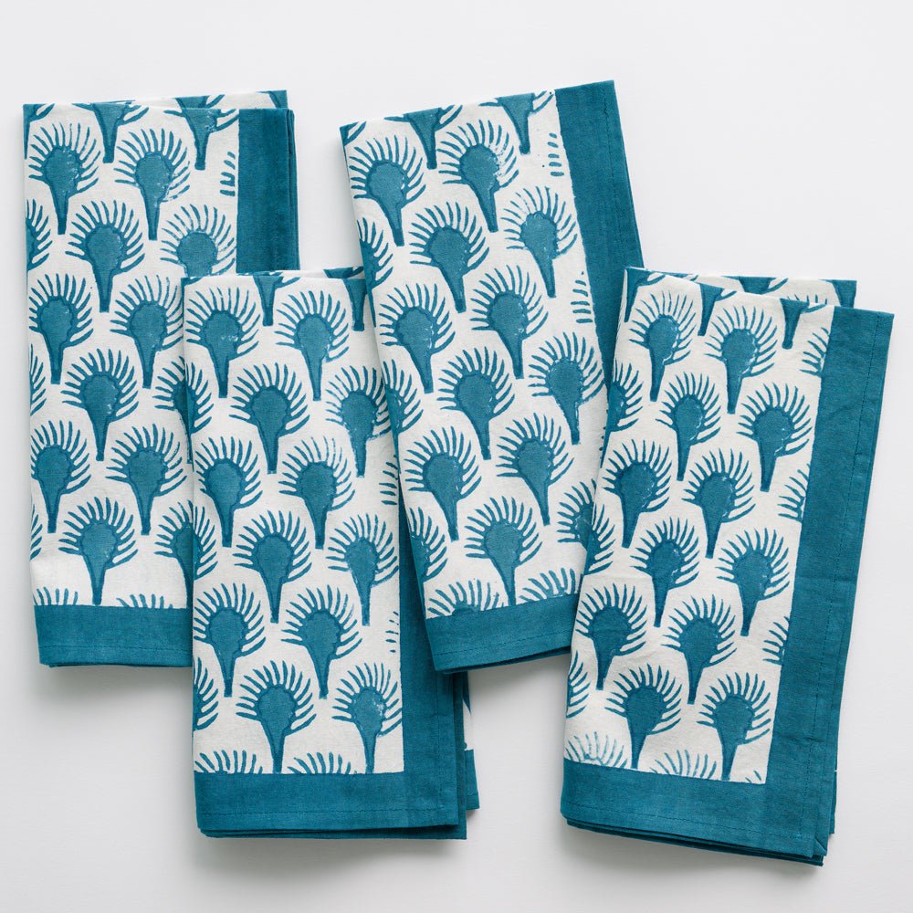 Geo Feather Teal Napkin | Set of 4