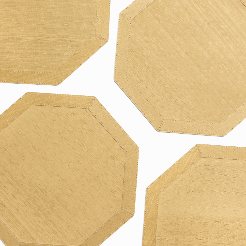 Radiant and warm, the Gold Octagonal Placemats bring instant glow to your tablescape. Their silk-inspired shimmer catches the light, while the smooth surface resists spills and cleans effortlessly for lasting shine.