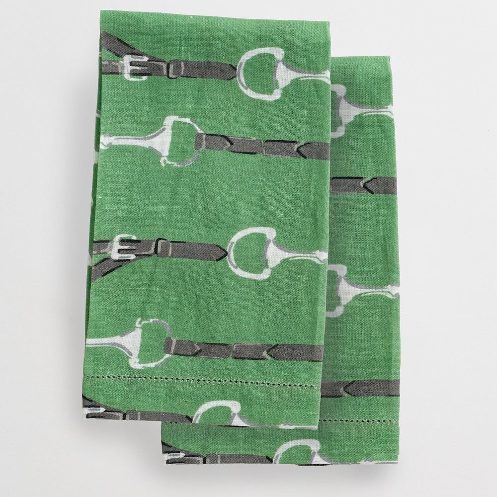 Green Linen Snaffle & Buckle Fingertip Towels | Set of 2