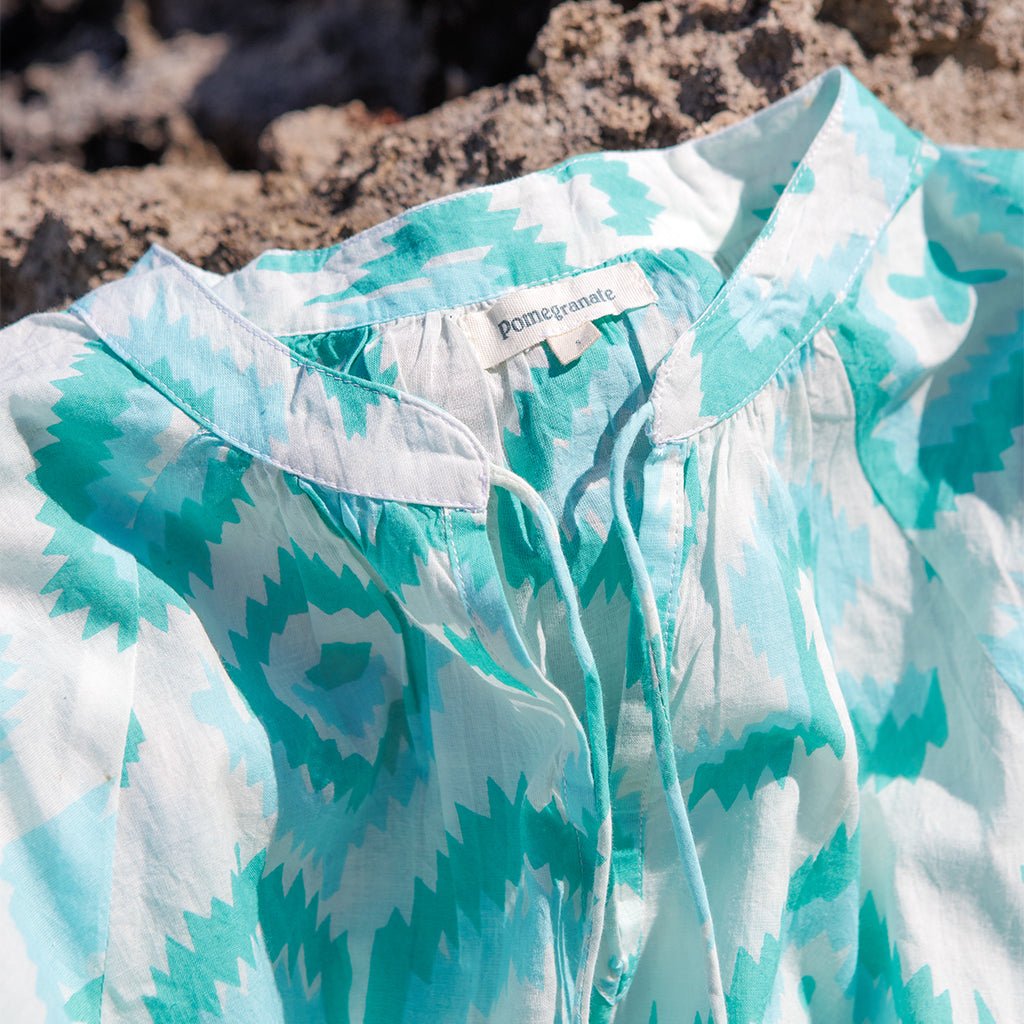 The cap sleeve dress in Ikat Azul feels fresh, feminine, and quietly polished. The clean silhouette lets the soft blue pattern shine while keeping the look understated. Comfortable enough for everyday wear and lovely enough for brunch or travel. A cool coastal classic.