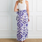 The Ikat Very Peri sarong drapes beautifully, making it a true summer staple. Lightweight and soft, it can be tied as a skirt, coverup, or wrap. The print adds a graceful artistic note to poolside afternoons and beach days. Simple, elegant, and endlessly useful.