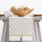 This beautiful 100% cotton, hand blocked printed Table Runner in Carnation Seafoam is intended to be mixed haphazardly together with the other patterns, just as our families are.