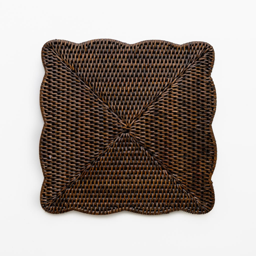 India Hicks Home Antique Brown Rattan Scalloped Square Placemat Set of 4