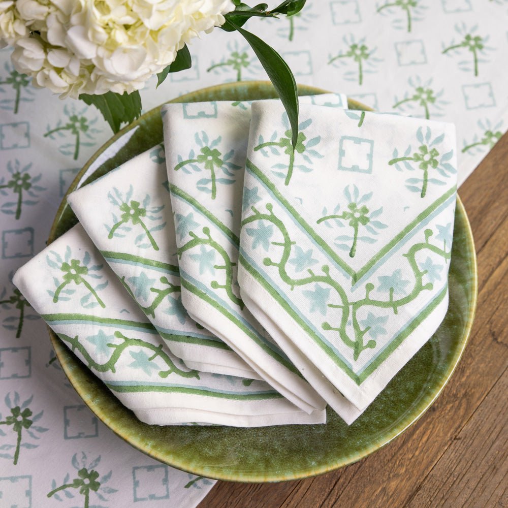 India Hicks Home Cuban Flower Palladian Blue & Soft Sage Napkin | Set of 4