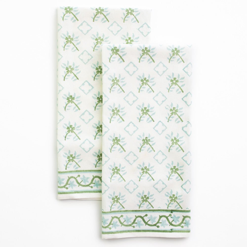 India Hicks Home Cuban Flower Palladian Blue & Soft Sage Tea Towels