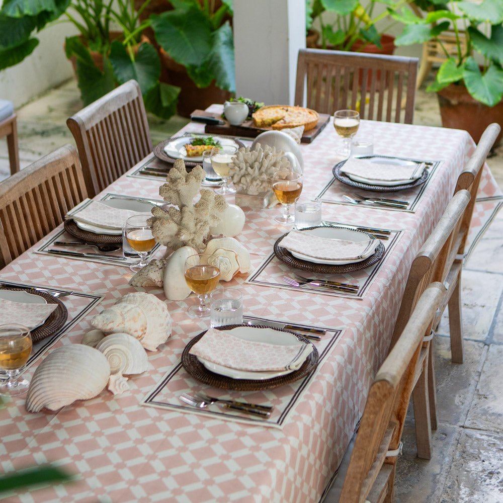 | 55 x 55 | We call this our card table size; perfect to add a pop of pattern and color on a small square table that seats 4 people or as a topper on a basic round table. |