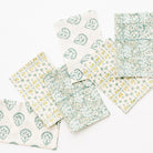 This beautiful mixed set of 100% cotton hand blocked printed cocktail napkins in seafoam are intended to be mixed haphazardly together, just as our families are.