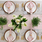 We seized the power of color and pattern to fill our Endless Summer Collection with optimism and joy. Our Palm Avenue Blush Table Runner is inspired by the BLUSH pink seen in my parents' English rose garden, and patterns borrowed from the reassuring avenue of palm trees that have stood proud in our garden.