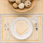 We seized the power of color and pattern to fill our Endless Summer Collection with optimism and joy. Our Palm Avenue Golden Placemat Set is inspired by the GOLDEN sunshine of a Bahamas summer day, and patterns borrowed from the reassuring avenue of palm trees that have stood proud in our garden.