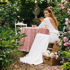 We seized the power of color and pattern to fill our Endless Summer Collection with optimism and joy. Our Seashell Blush Tablecloth is inspired by the BLUSH pink seen in my parents' English rose garden, and patterns borrowed from the David Hicks silk scarf patterned with sea shells, worn around his neck or as a pocket square in his jacket.