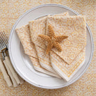 This beautiful set of 100% cotton hand blocked printed napkins in Seashell Golden is intended to be mixed haphazardly together with the other patterns, just as our families are.