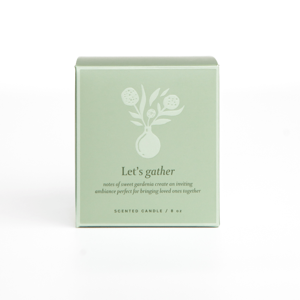 Light up your home with the Let's Gather Scented Candle. Made from 100% natural plant-based ingredients, this candle features notes of sweet gardenia that will create an inviting and warm atmosphere, perfect for bringing loved ones together.