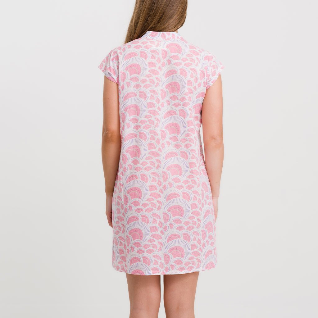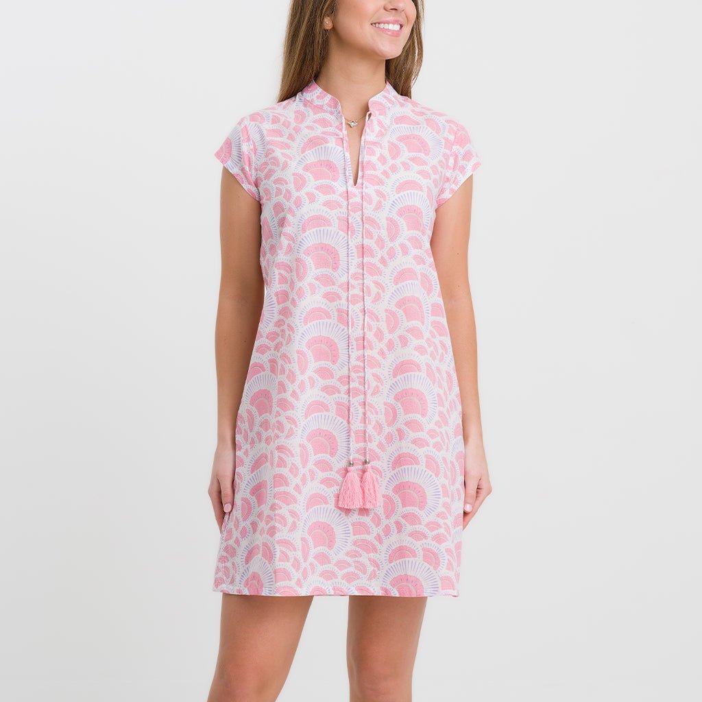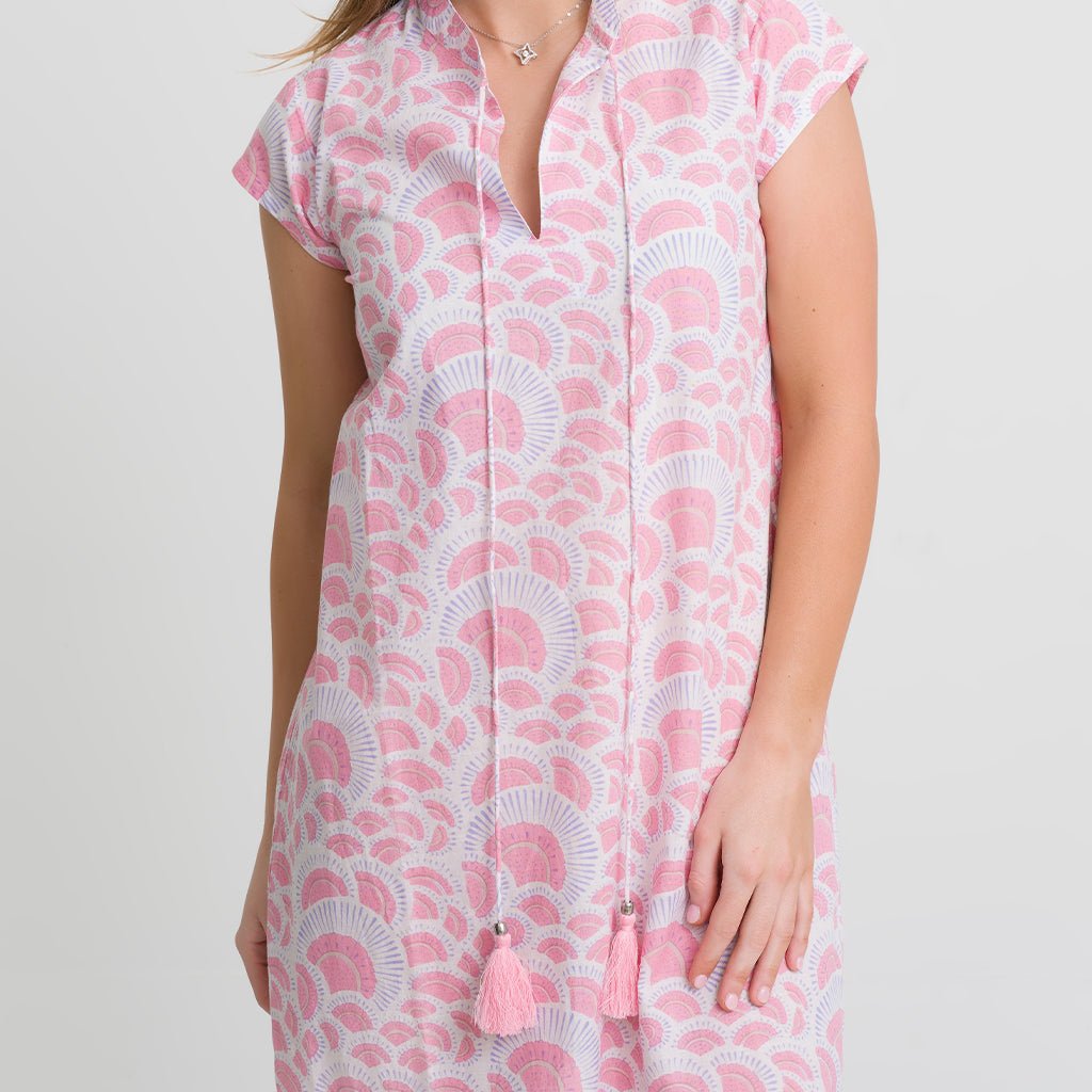 The cap sleeve dress in Lola Pink feels fresh, feminine, and ready for warm afternoons. Its easy silhouette lets the print shine while keeping the look clean and refined. Comfortable enough for everyday wear and lovely enough for gatherings with friends. A bright, uplifting favorite.