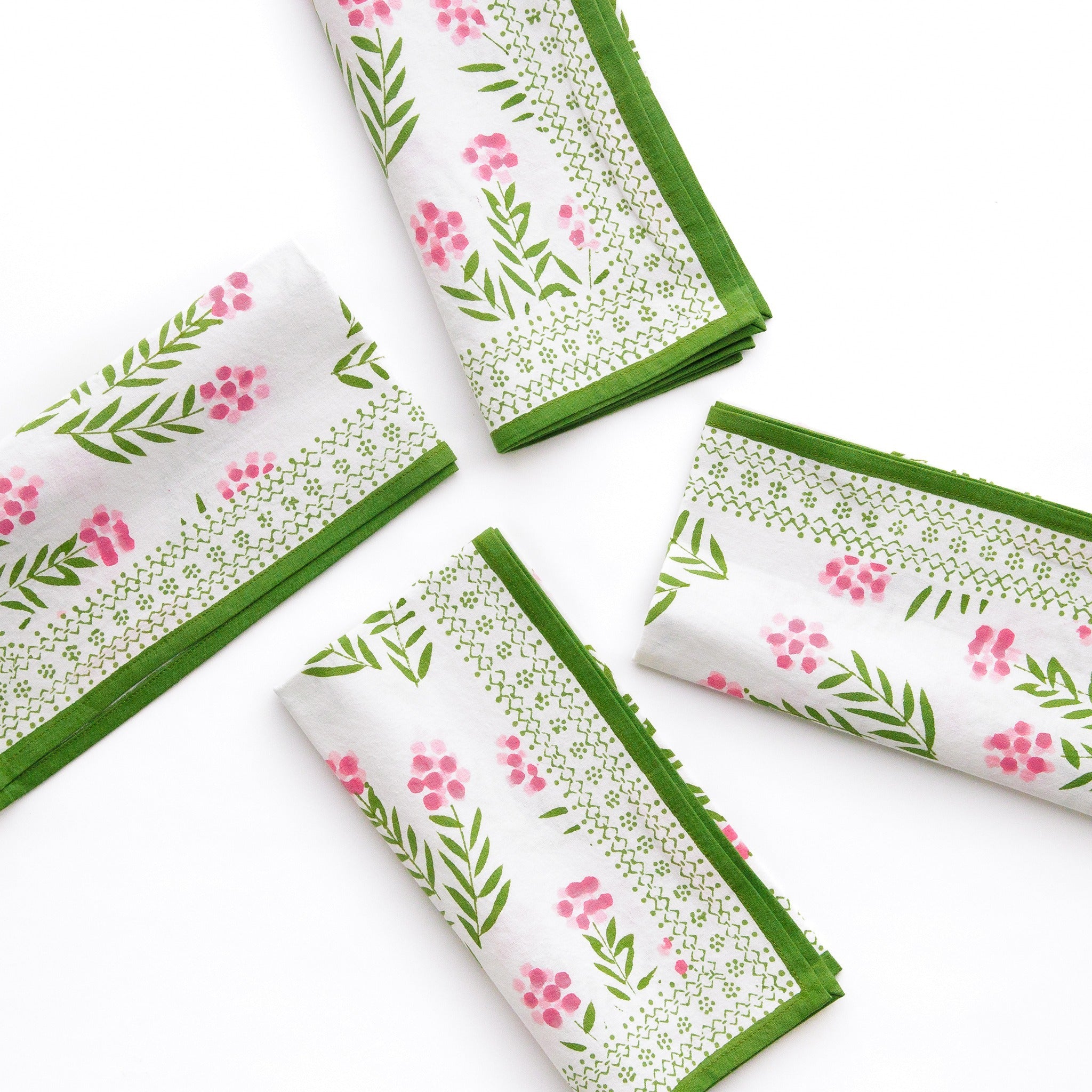 Each piece is hand-block printed by skilled artisans, giving the pattern a painterly finish and providing each piece with one-of-a-kind character. Perfect for spring entertaining, Valentine’s Day tables, brunches, and everyday dining.