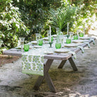 This cheerful hand block printed table runner will brighten up your table and cheer up your day. Perfect for casual everyday use as well as entertaining and gatherings with family and friends. Inside, outside, in the garden and up in the mountains, they fit in everywhere! Pair with matching tablecloths and napkins set to complete the elegant yet casual look.