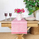 Brighten up your dining experience with our Pom Buti Pink Table Runner. Designed with a stunning hand block-printed floral pattern and finished with vibrant scalloped border along the ends, this runner is ideal for adding texture and color to your table. Use it on its own or layer it over a solid tablecloth to create an effortlessly chic centerpiece.