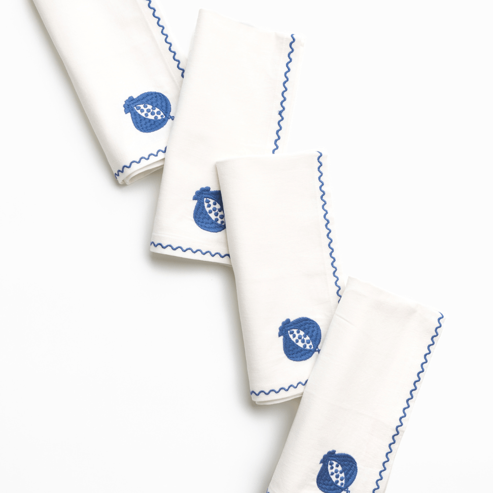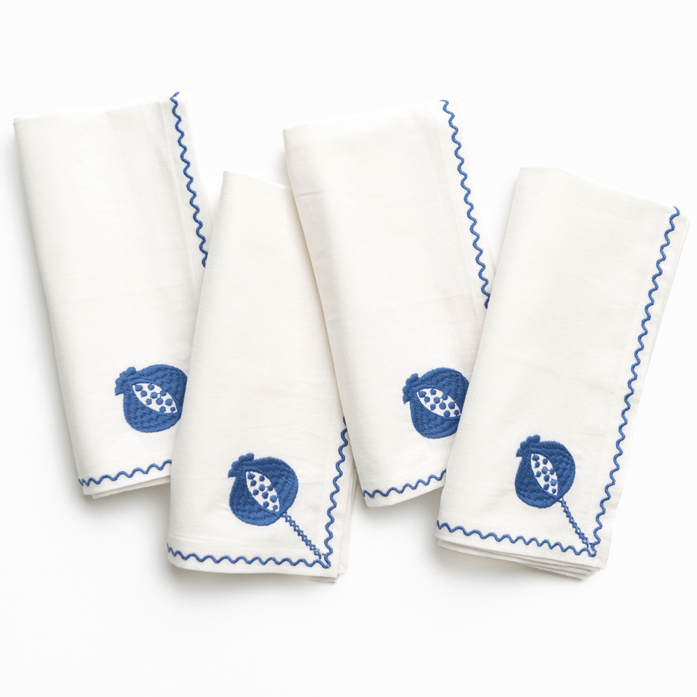 These blue crewel embroidered napkins bring a touch of quiet sophistication to your table. The delicate stitched detailing adds texture without overpowering your setting, making them ideal for mixing with patterned linens or solid cotton pieces. A beautiful way to add artistry and refinement to everyday meals.