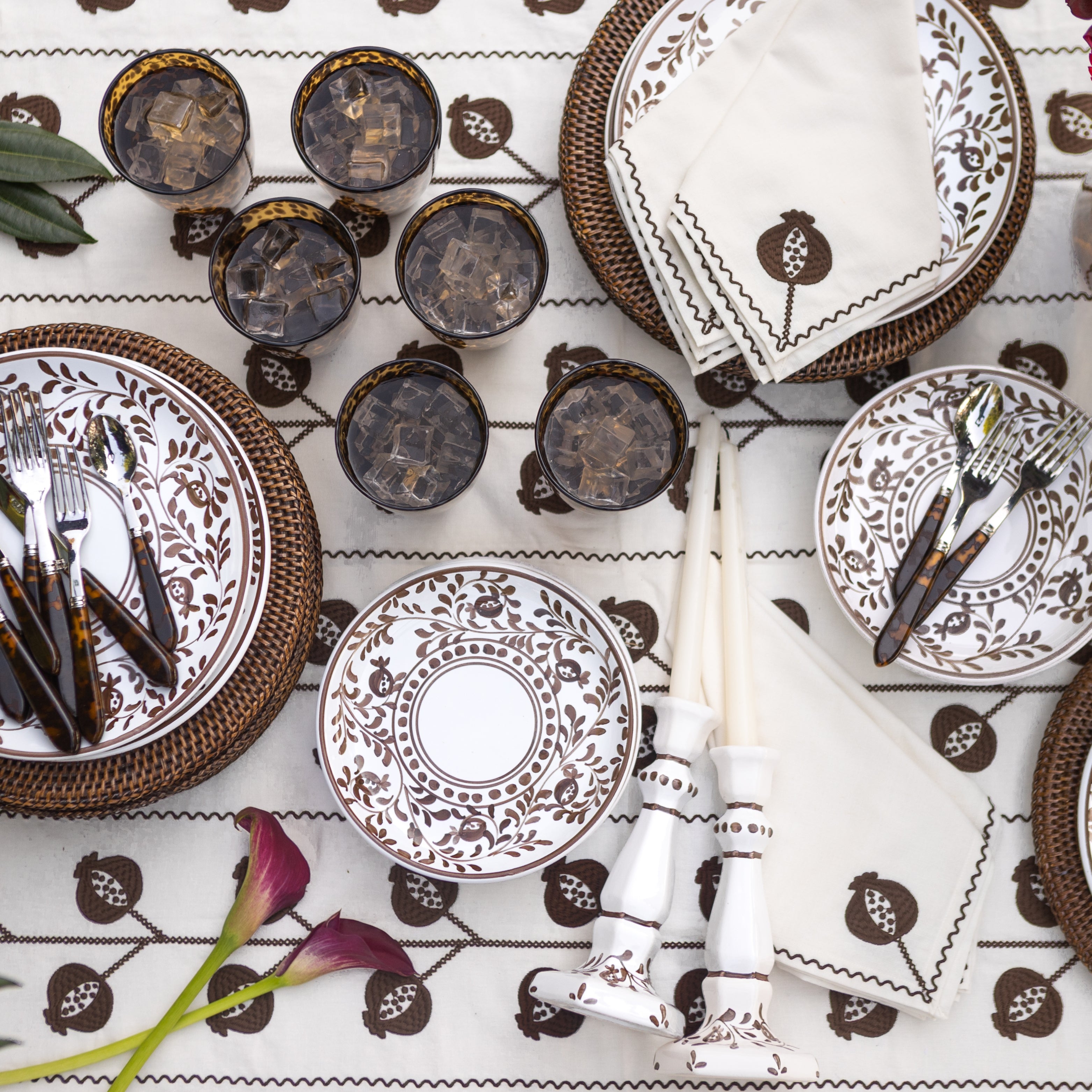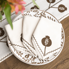 These cotton napkins with brown crewel embroidery offer a balance of texture and refinement. Each piece showcases intricate floral motifs that echo traditional craftsmanship while remaining perfectly suited for modern entertaining. The soft cotton and tonal threadwork make them a versatile staple—pair them with matching embroidered pieces or your favorite patterned linens for a cohesive, layered look.