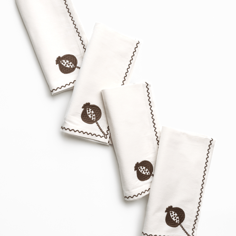 Pomegranate Crewel Brown Napkin | Set of 4