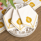 Thoughtfully finished with intricate crewel embroidery, these ochre napkins bring artisanal detail to every place setting. The raised, textured stitchwork — a hallmark of traditional crewel craftsmanship — adds a refined layer of dimension and charm. Soft yet durable, they’re designed to complement any tablescape, from casual dinners to festive gatherings.