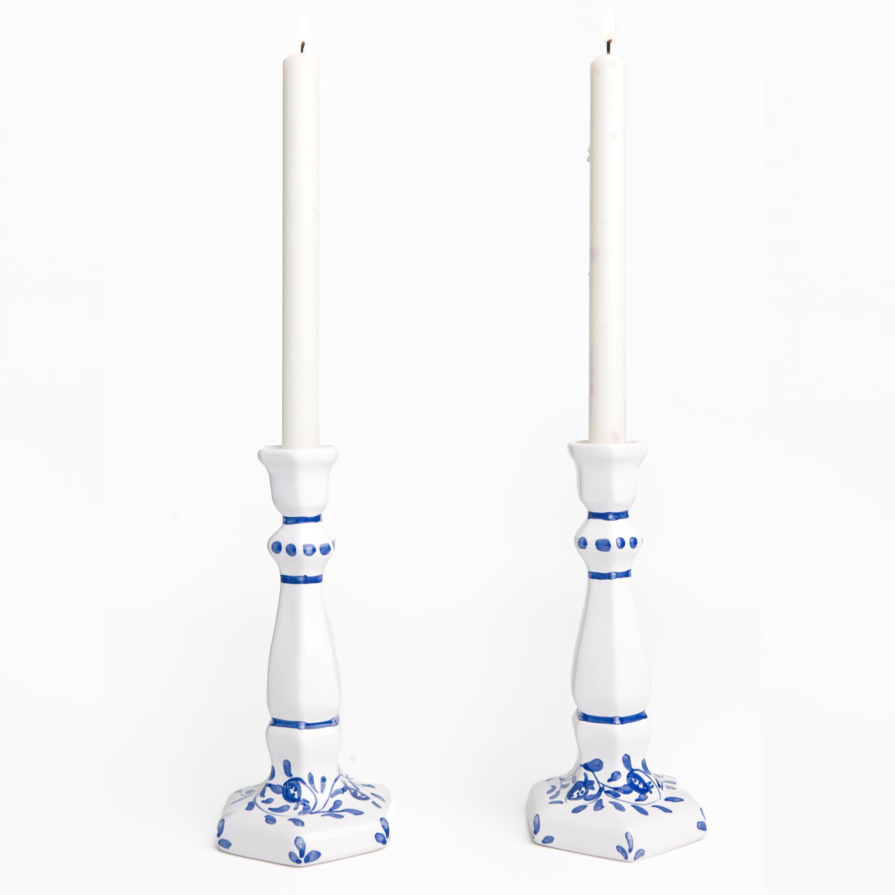 Illuminate your gatherings with our Pomegranate Scroll Candlesticks in Blue. Hand-painted with scrolling vines and stylized pomegranates, this pair brings warmth and artistry to any tablescape. Whether styled alone or flanking a centerpiece, they add height, pattern, and glow in every colorway.