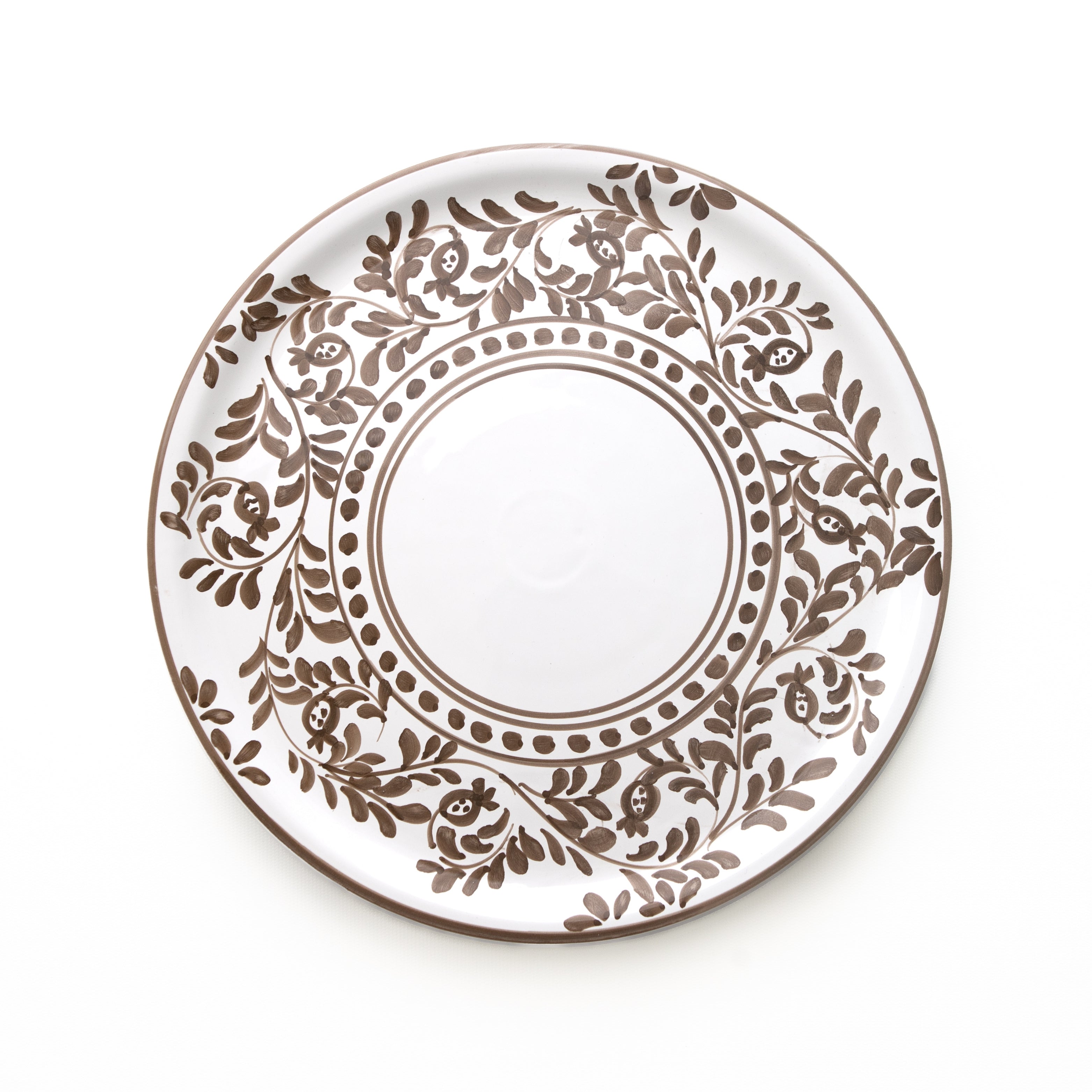 Elevate your tablescape with our Pomegranate Scroll Charger Plates in Chocolate. Oversized and decorative, they frame dinner plates with striking scrollwork and make every place setting feel layered and intentional.