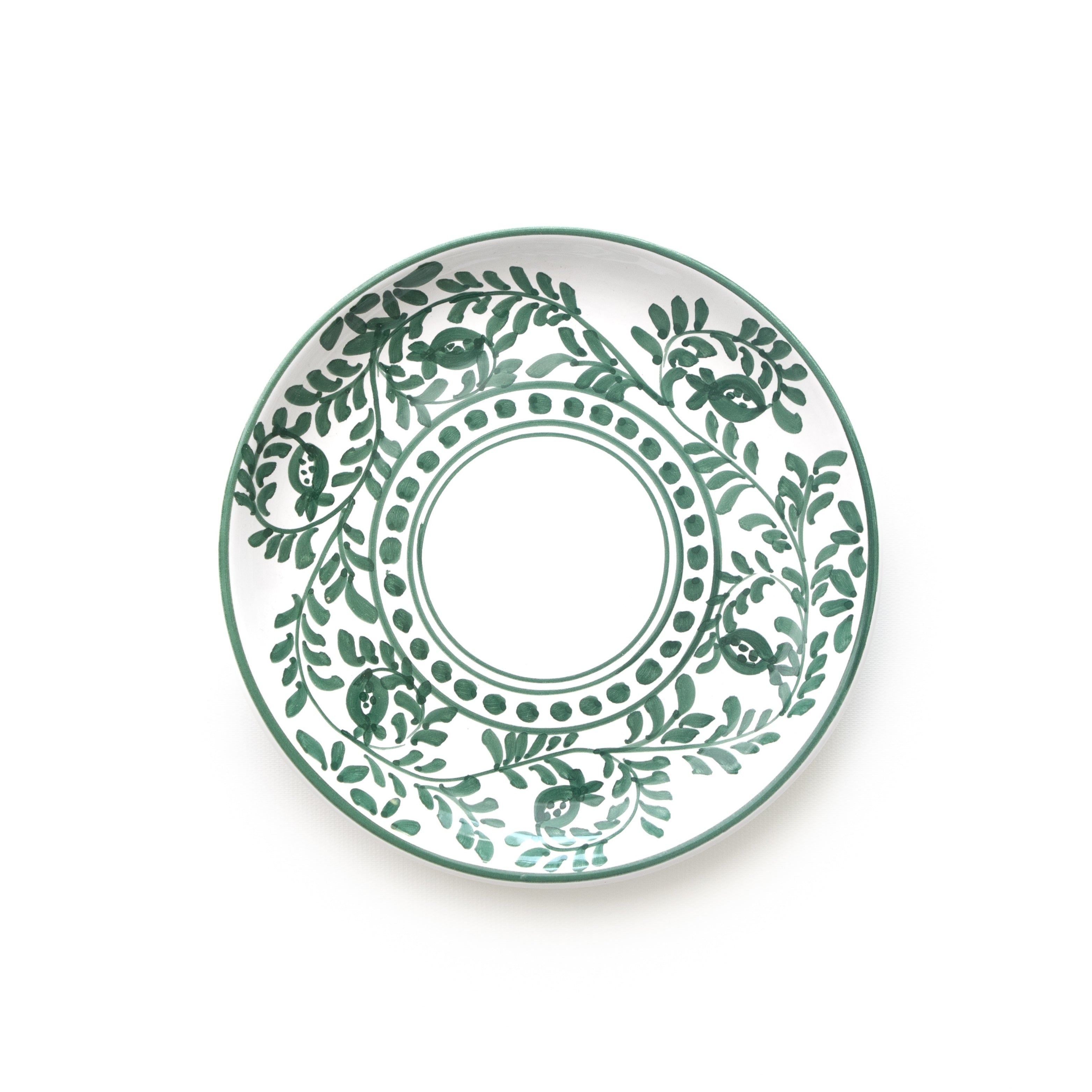 A canvas for your first course or everyday meals, our Pomegranate Scroll Salad Plates in Forest Green balance refined design with practical size. The scrolling border frames dishes beautifully, while the durable craftsmanship ensures lasting use. Perfect for layering with dinner plates or pairing across the full Pomegranate Scroll collection.